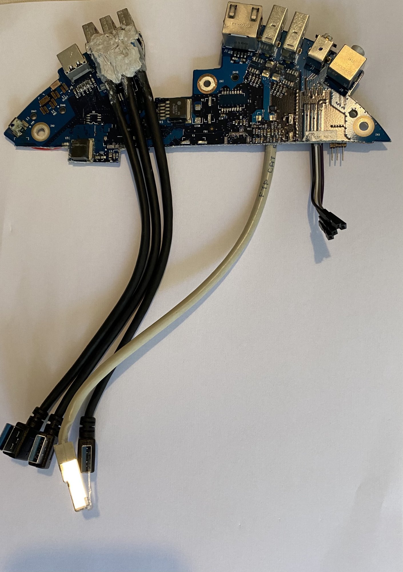 I soldered cables for Ethernet and sound ports.