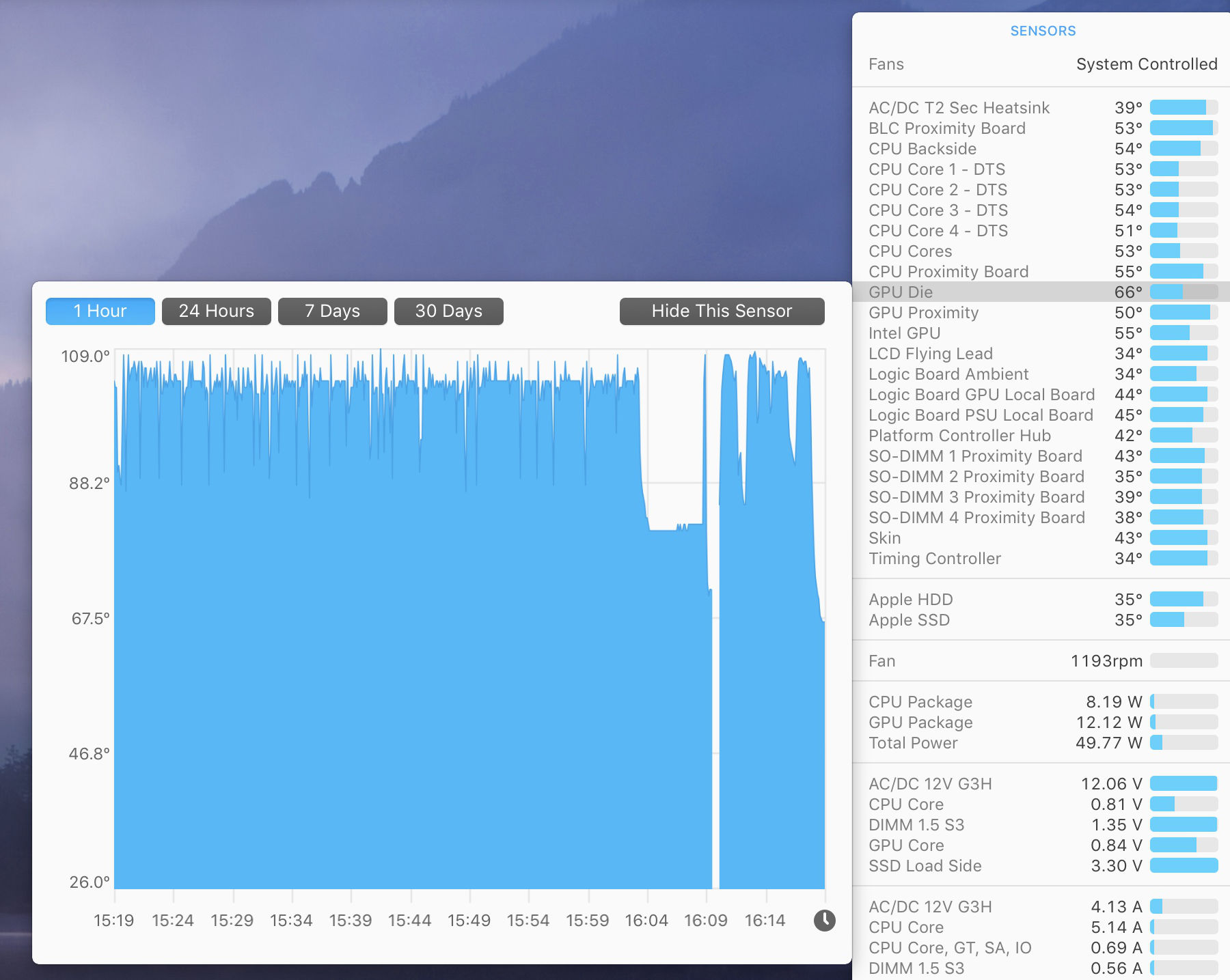 This happens in Windows bootcamp as well as macOS, and is always when I am playing demanding games, e.g. Deus Ex Mankind Divided, DCS, etc.