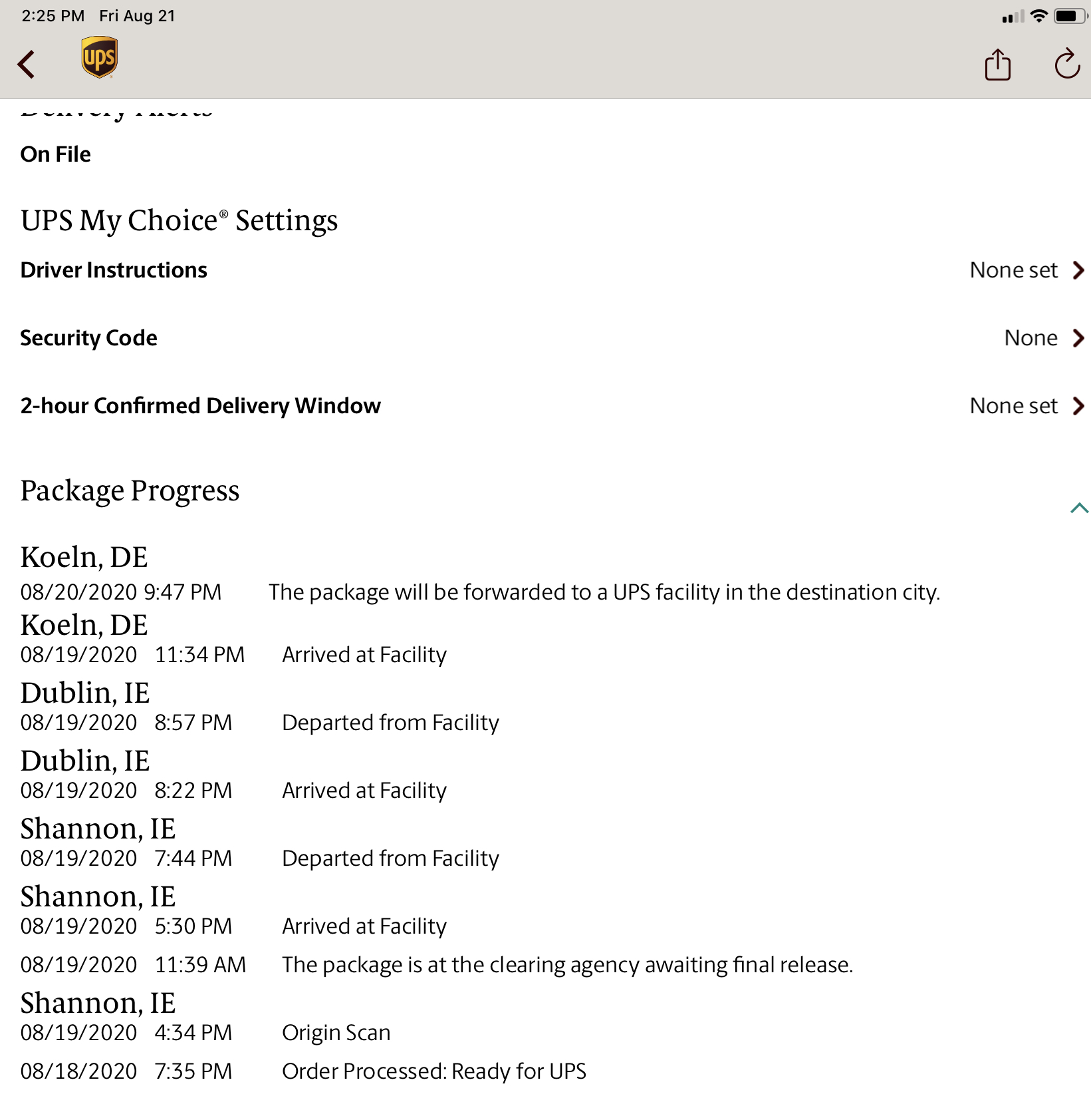 Call Apple. They’ll push the investigation from their end, which carries more weight with UPS, since Apple spends way more money with them.Mine was also ordered on 6th, apparently shipped on 13th, but UPS tell me they can't find it and to start a claim, which is a 10 to 30 day process to investigate. I don't know which is worse, especially as Apple already charged my CC.