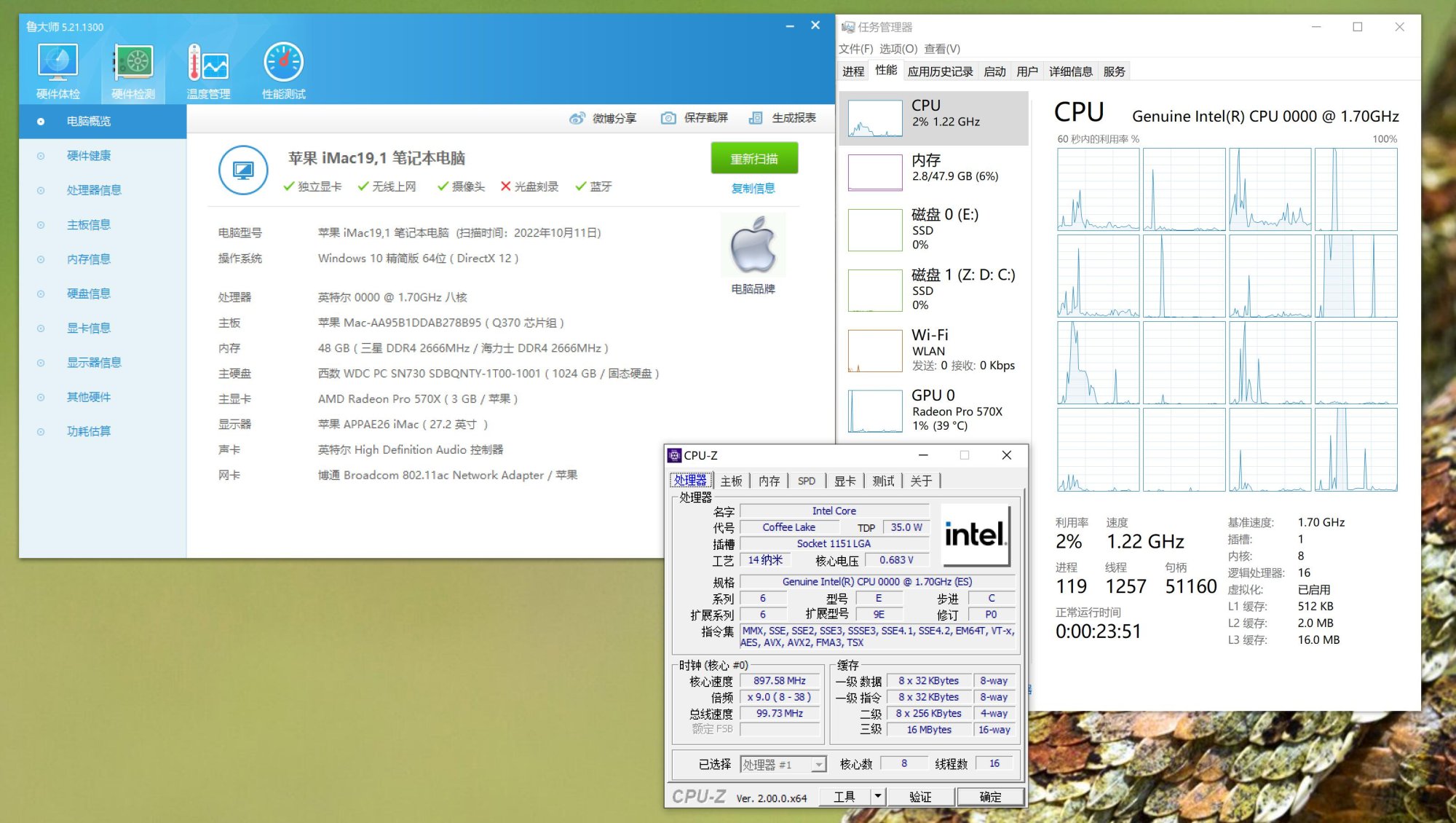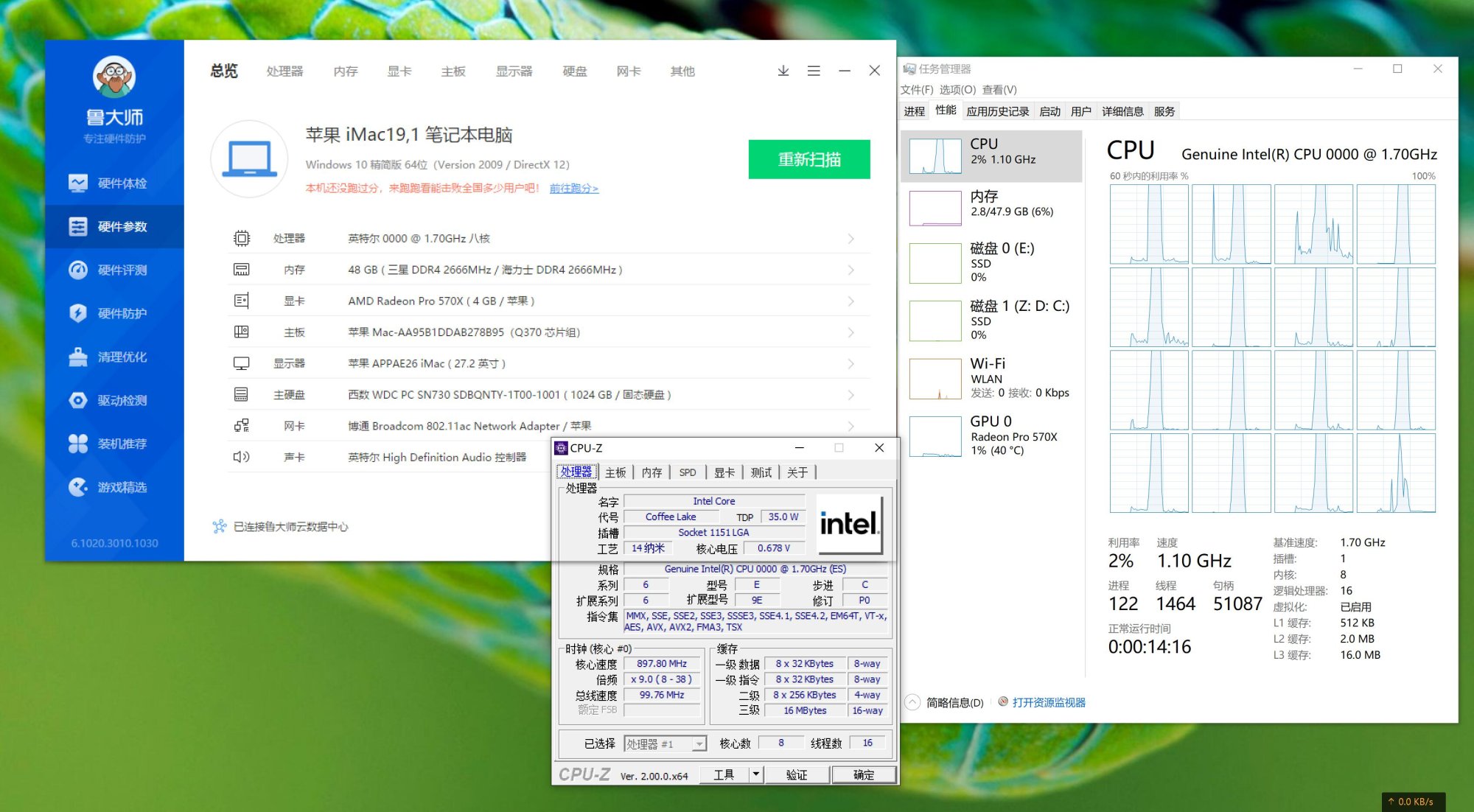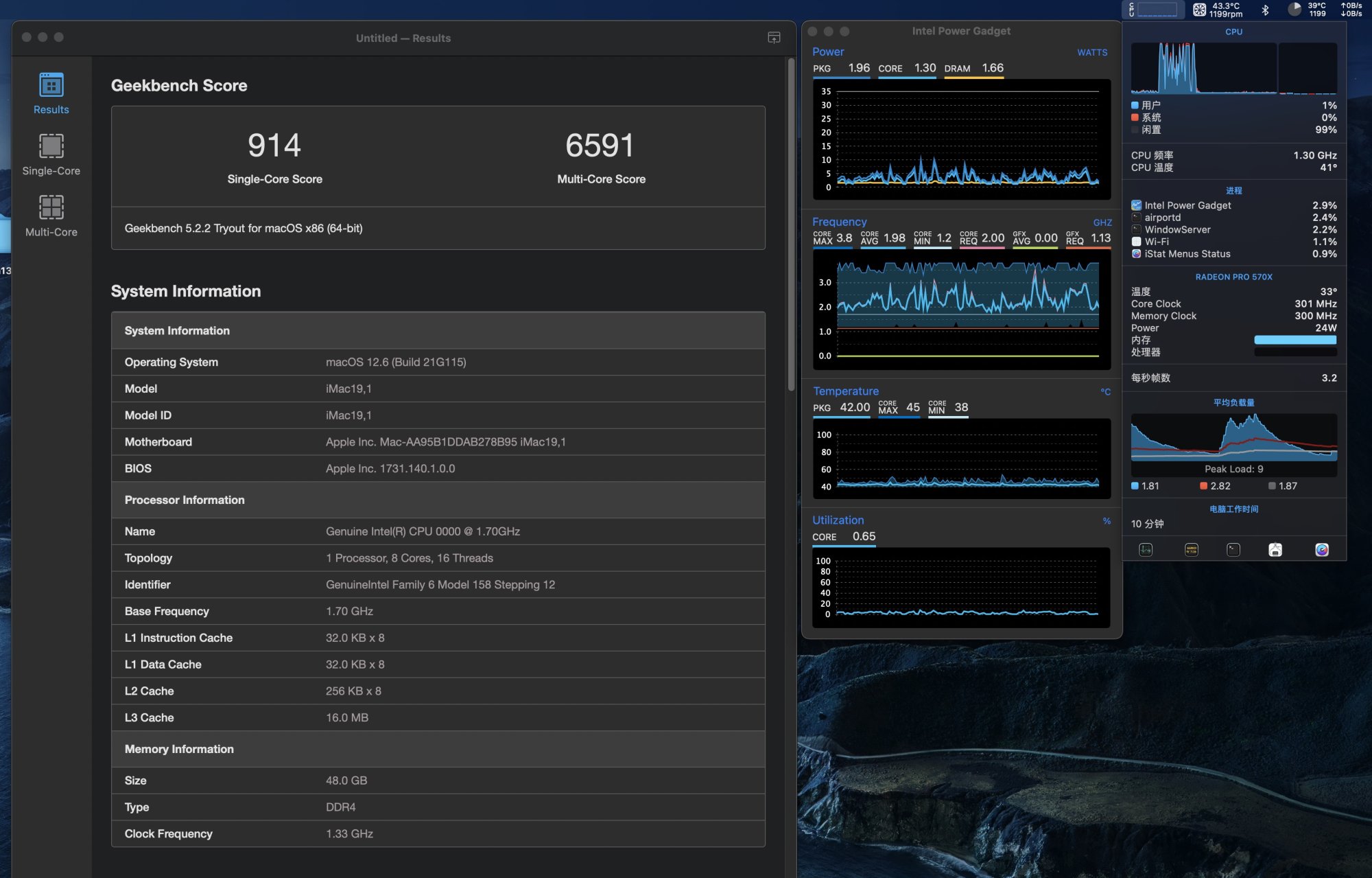 Windows10 macOS dual system everything is normal no abnormalities found, macOS system processor did not change to i9 but 1.7 GHz eight-core Intel Core i5