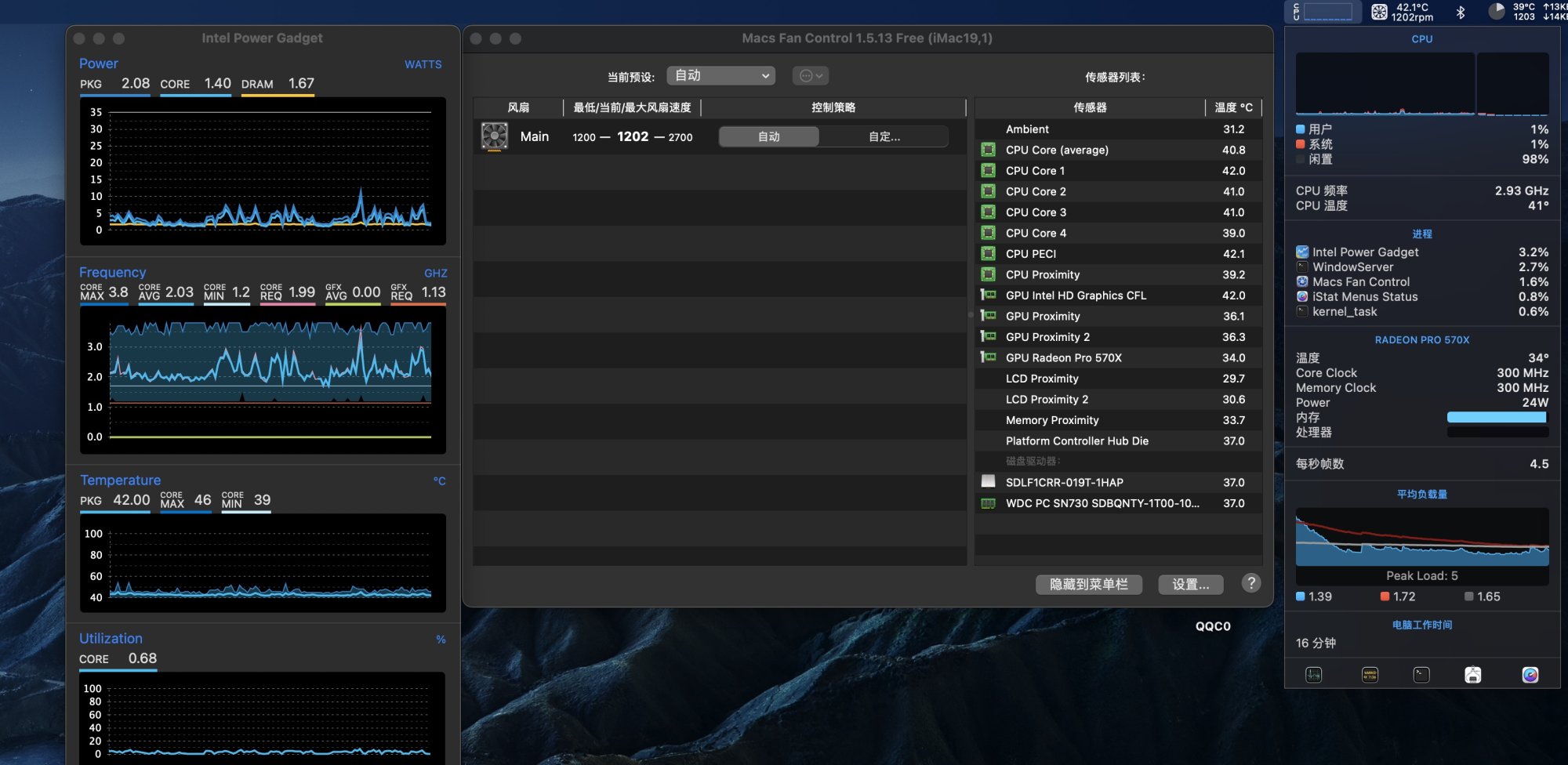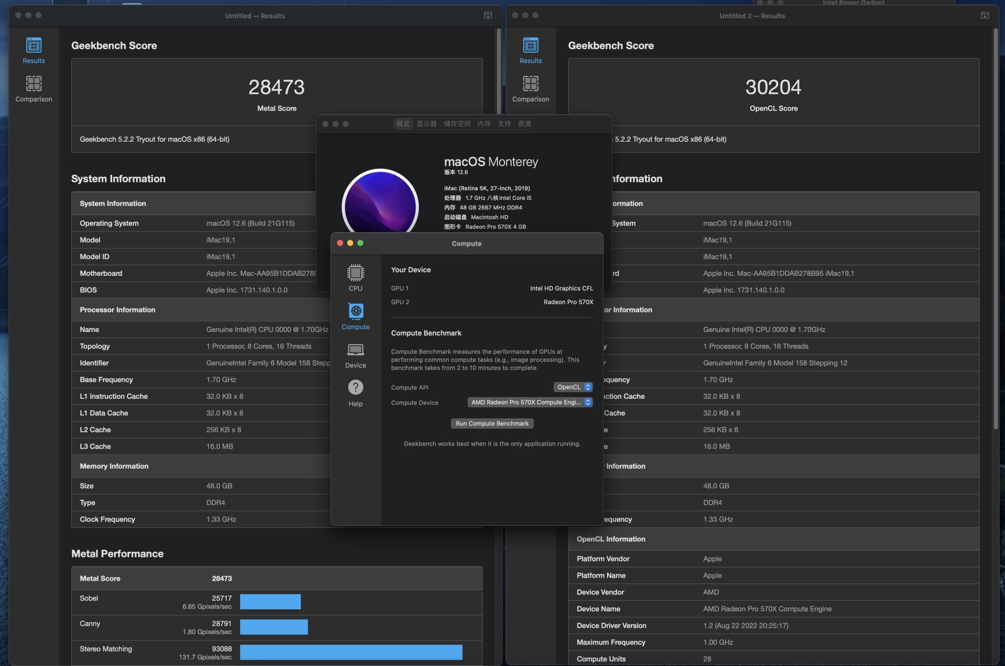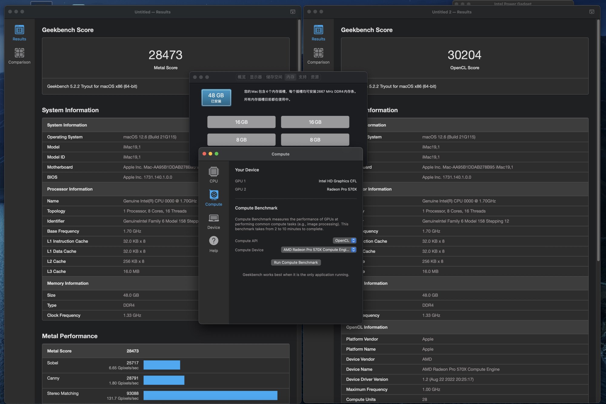 iMac19,1 2019 27 5k my original official configuration is i5 8500 8G*2 total 16G 256G flash pro 570x 4g