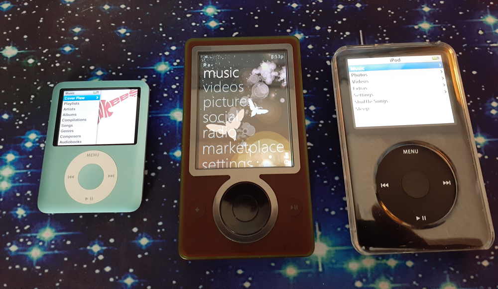 iPod Nano 3rd gen ("Fatty"), Zune 30, iPod Classic 5.5 gen.