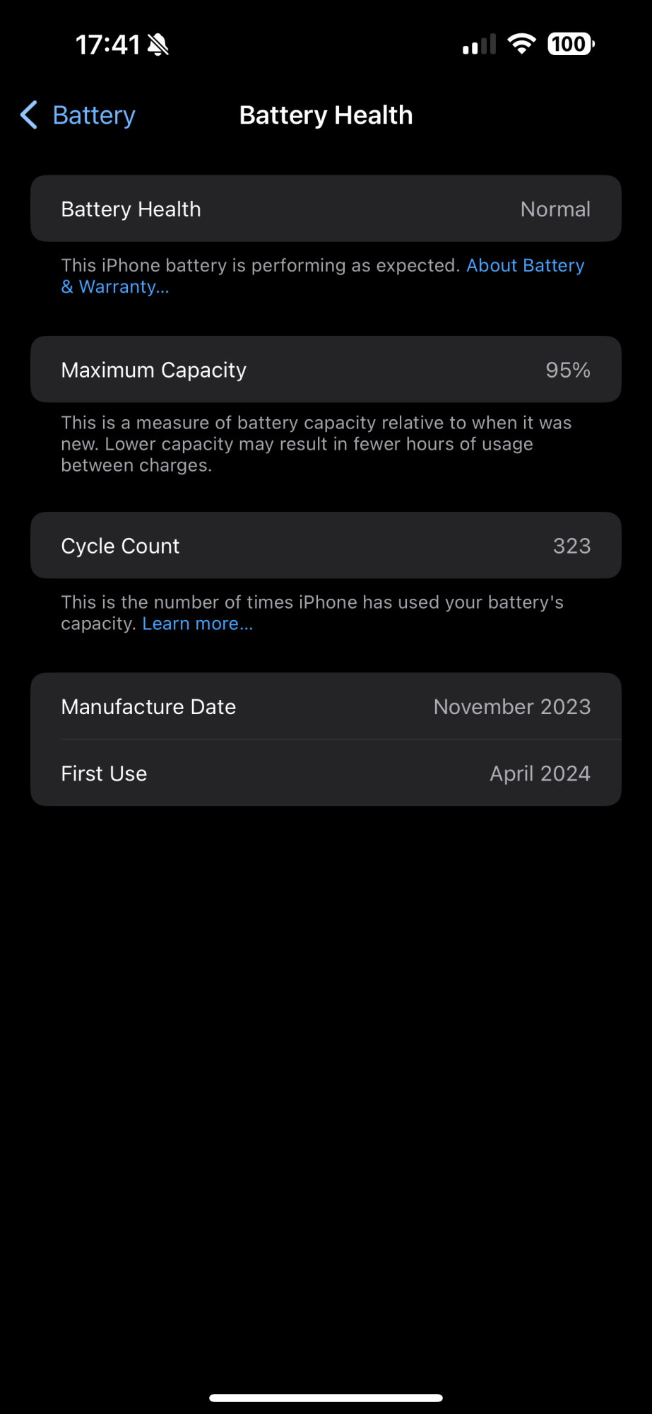 I have a similar situation, my 15 Pro Max has been at 95% for about 5-6 months now 😂😅
