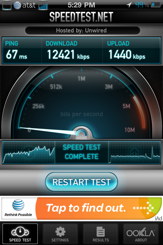 Secondly, is there a way to determine if it's actually utilizing wireless N? How about what speed it's connecting? My router is a dual band so supposedly is supports simultaneous Wireless G and Wireless N connections (everything is Wireless G except for my iPhone), not a big deal or anything, just curious. (That's obviously not the internet issue though, even if it was on Wireless G thats 5 times the speed of my internet connection)