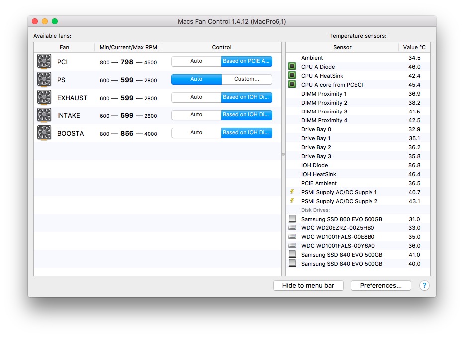 want cooler but in the grand scheme of things it won't make much difference, if things aren't actually overheating then it's a mostly theoretical longevity argument. After all, the vast majority of Mac Pros that are out there have been running for about a decade with nothing other than the SMC defaults, it's only us geeks who like to tinker who ever both actually checking on temps, those thousands of machines have done OK on the default SMC so far, and they're still here...