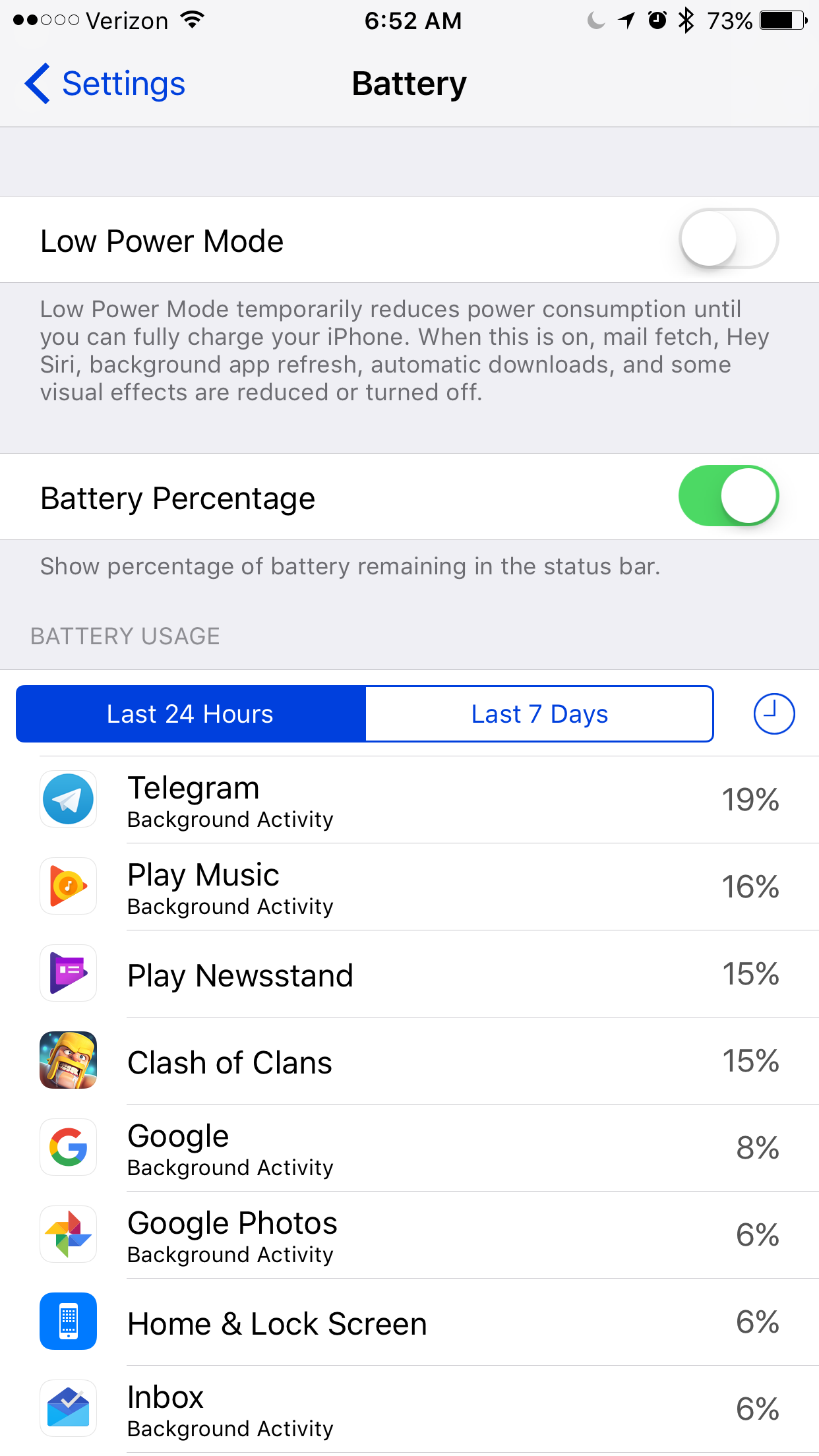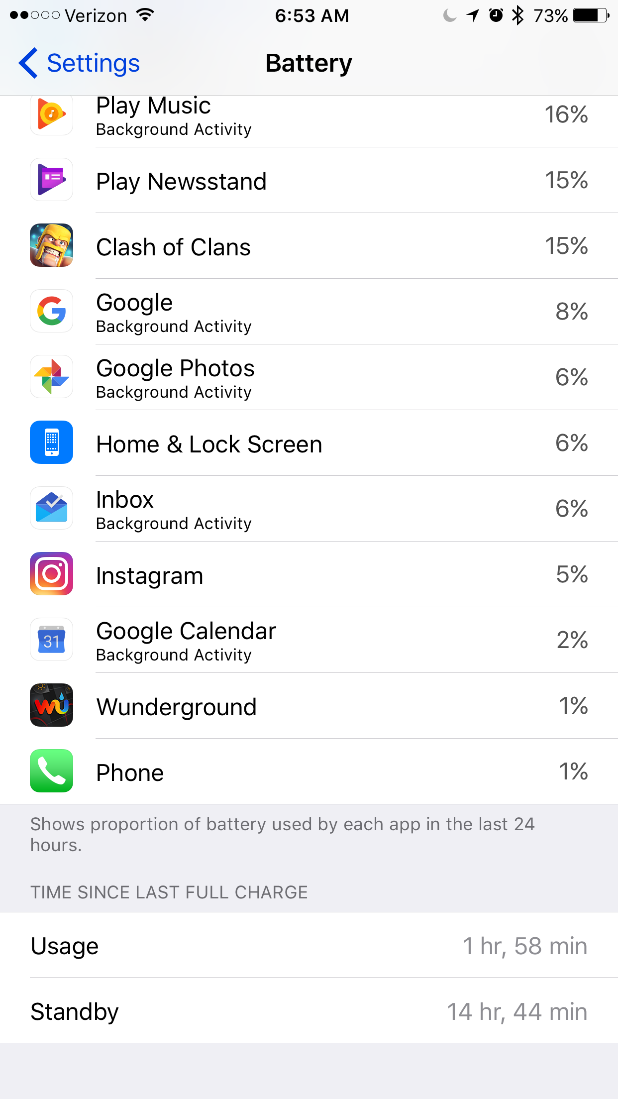 Normal usage for me. Last iOS update gave me a nice boost. Have had this phone for over a year now. I'd say I'm probably a light to medium user. Some gaming but by usage Time you can see it's not a ton.