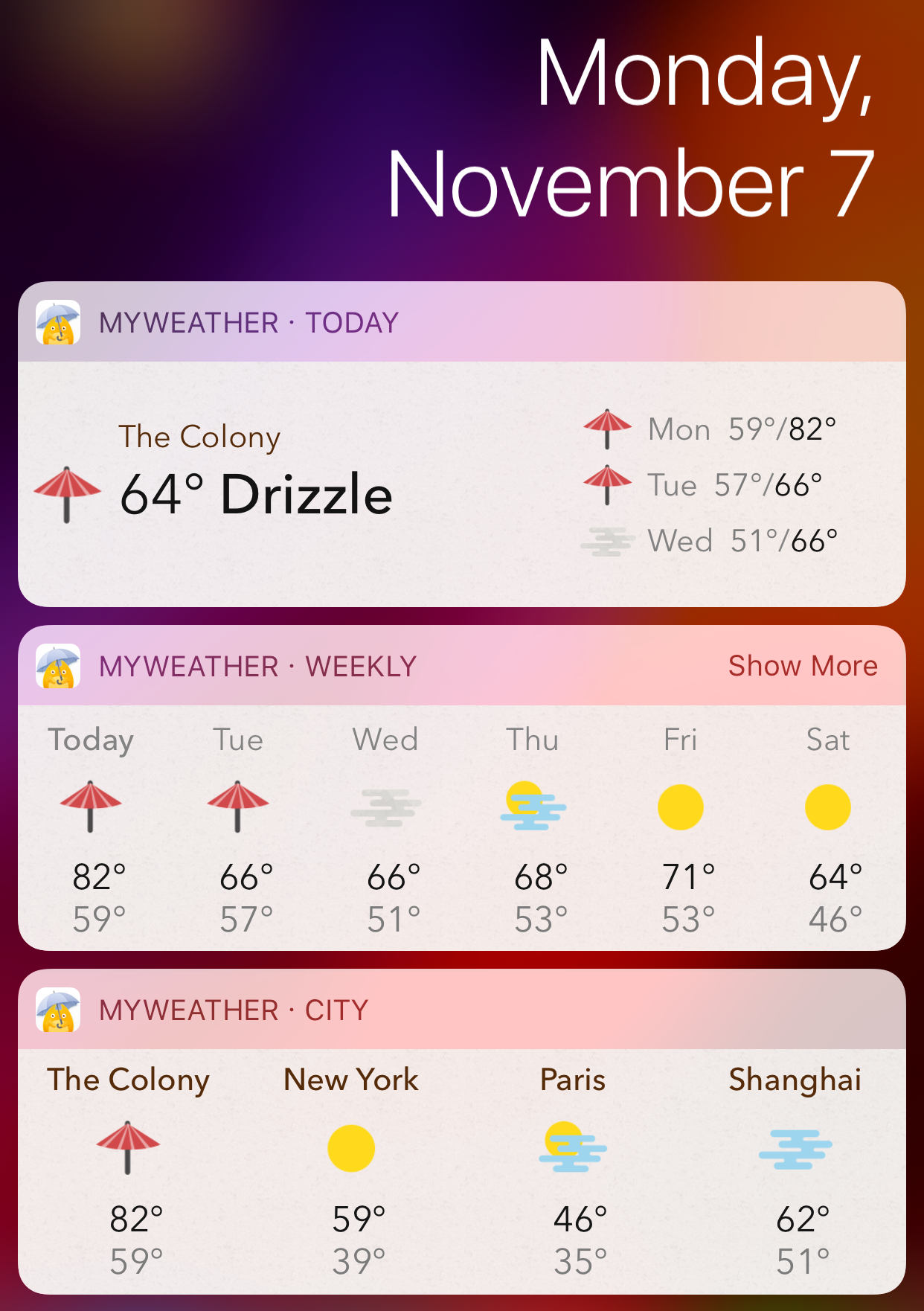 How about we make a list of apps with widgets optimized for iOS 10. If you want to add an widget you're welcome but please describe the purpose of the app and how the widget looks and works in compact and expanded mode. You might also post these infos and screenshots in a new post (you can also link to these posts). The purpose of this thread is to find new and unknown widgets for people who really like to use them like me.
