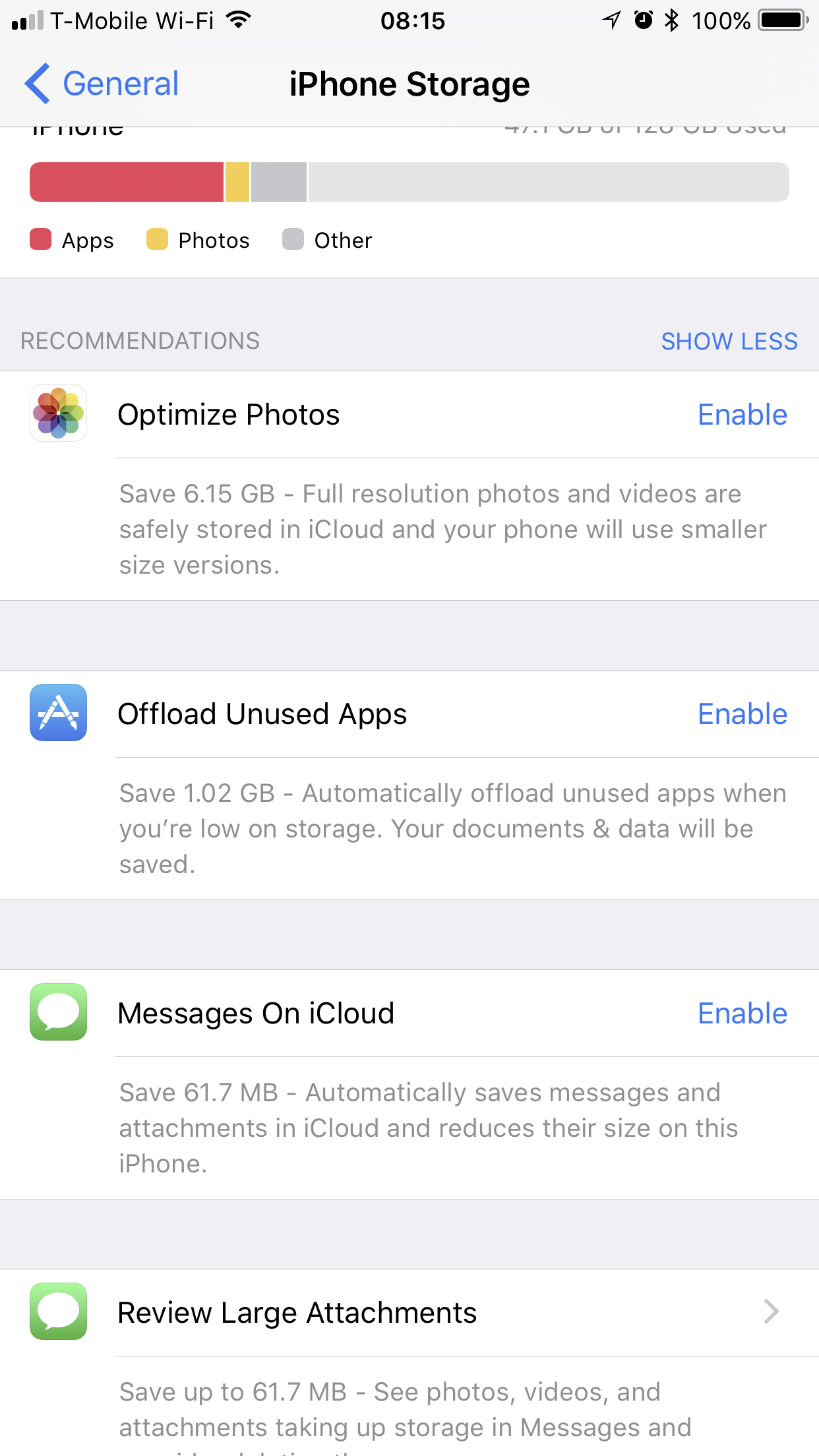 AWESOME! Many thanks!Offers ways to increase space on your device, most by deleting or offloading to iCloud