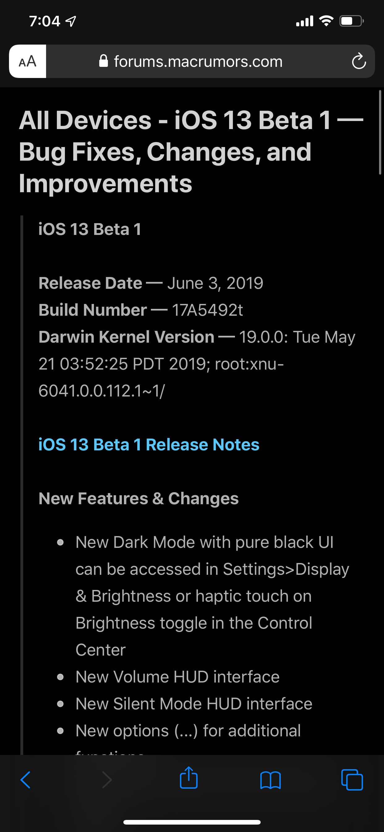 I just noticed when you haptic touch AA on Safari, you can quickly enable reader dark mode (like on this thread). Safari will let you know whenever a certain page has a reader view. Also, like the new notes from developer after installing a beta app to let you know changes to test.