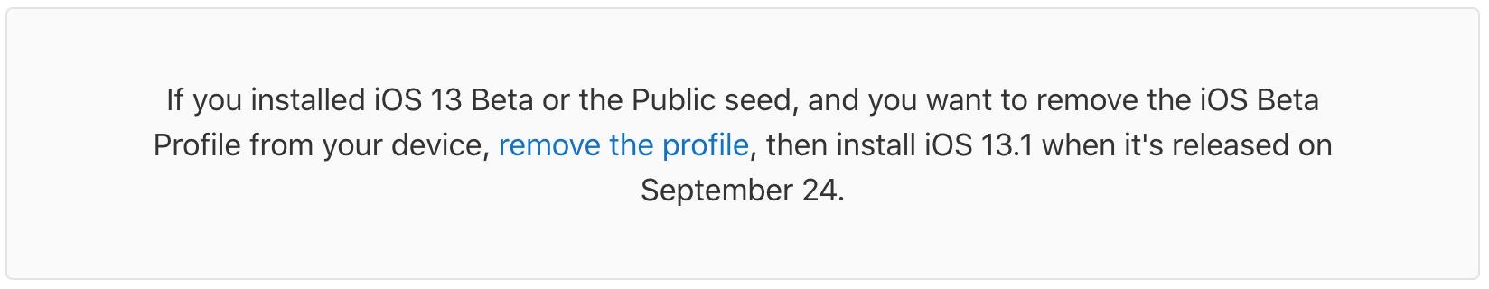 Just to be sure. Having iOS 13.1 beta 4, erasing the phone will remove the profile and when iOS 13.1 is released later today it will shown as an update?