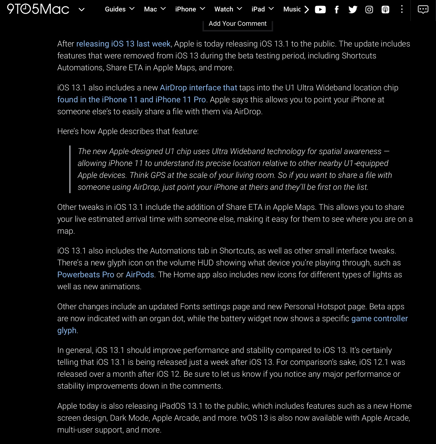 According to 9to5, 13.1 is out... maybe we will get 13.2 today at 1pm..