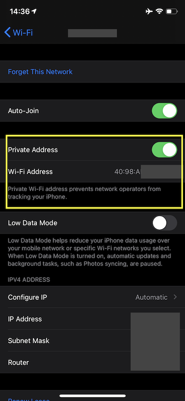 Looks like we get 'privacy MAC addresses' by default now, on both iPhone and Watch