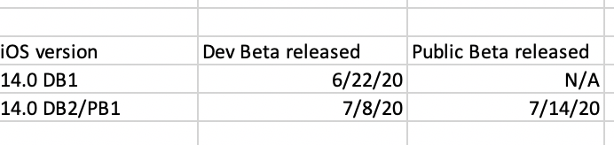He followed up that post though and went back in here to check the last three initial iOS releases to confirm the first public beta was one week after DB2 release.