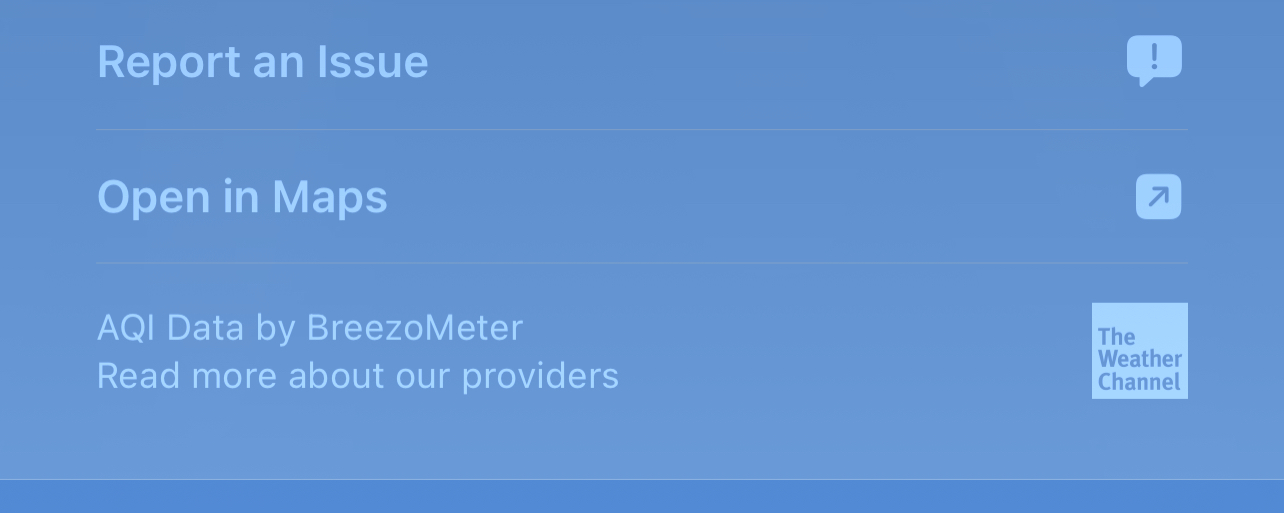 Even though they’ve updated the Weather app and seem to be pulling data from Dark Sky now, are they still listing The Weather Channel as a data source?