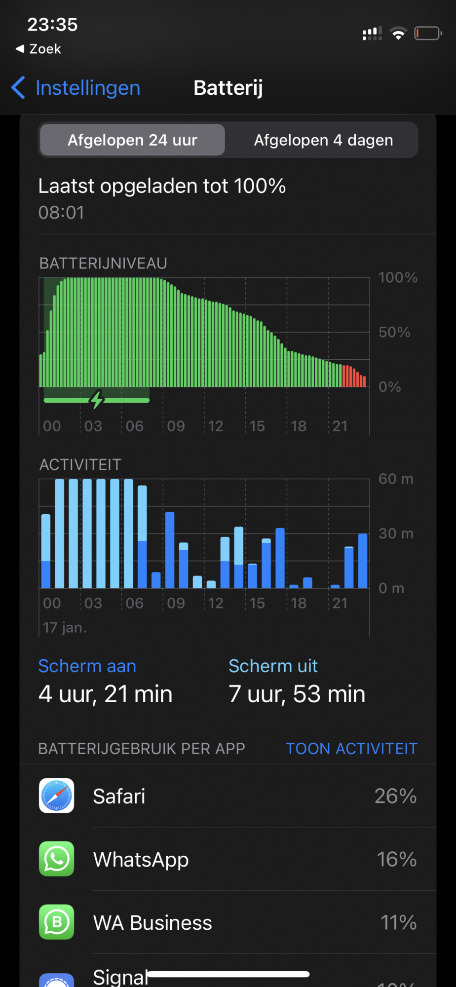 A DFU with an 'everyday' phone is a pretty fierce thing to do since I constantly find out I miss stuff or have to redo that. but so far the phone is at 30% at 0.03 and was disconnected from the charger at 14:03.
