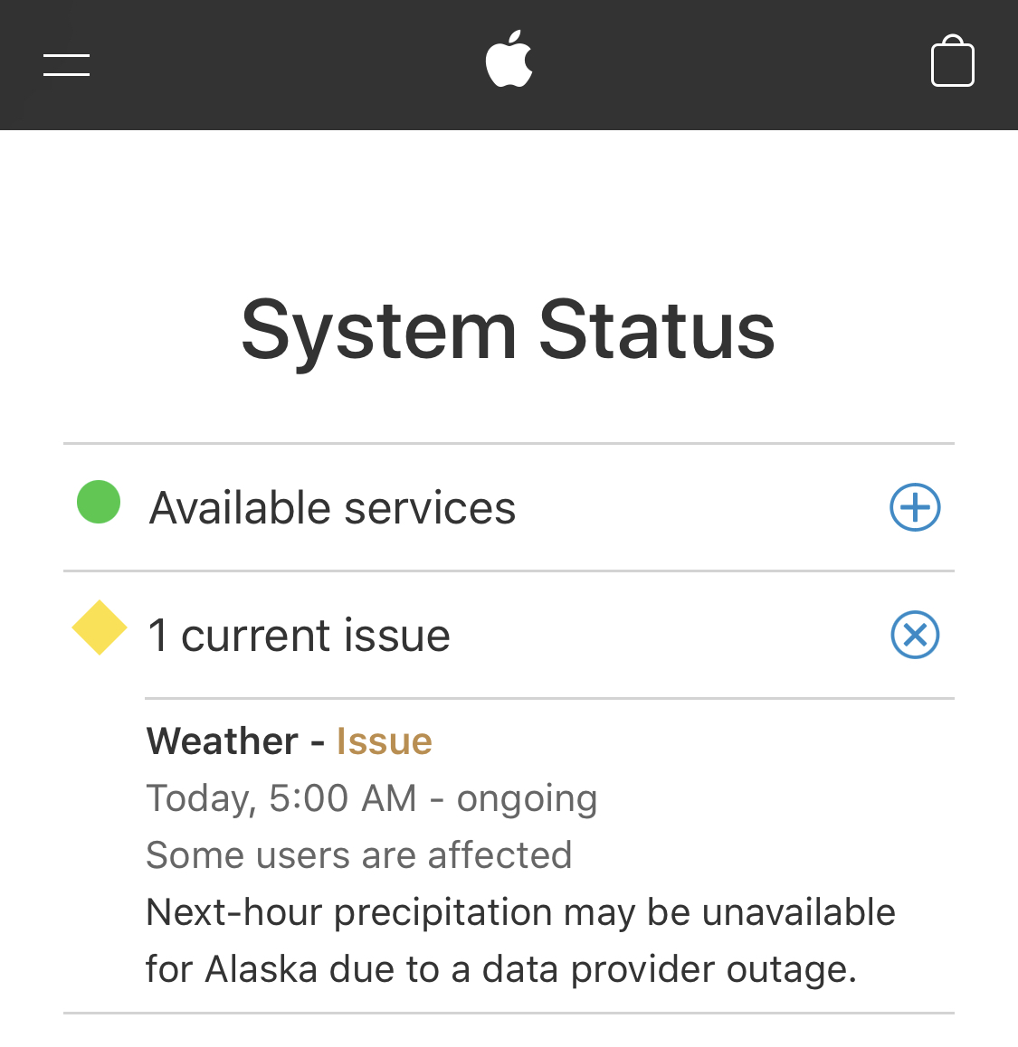 Seems weather issue should be resolved now for those affected. Apple Status page states its corrected