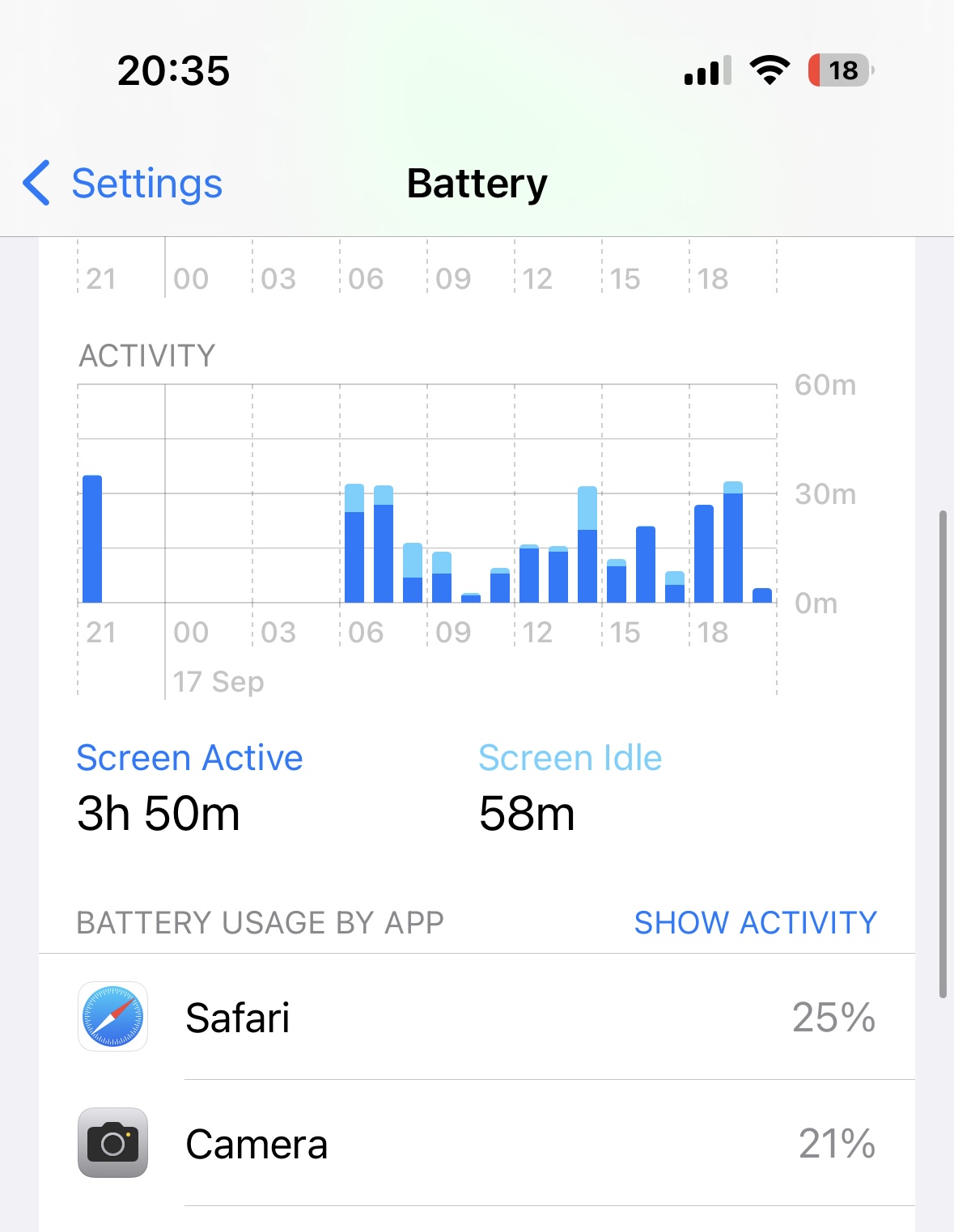 But, for the same iOS device, with the same processor efficiency and battery size, iOS updates are the worst thing that can happen. The iPhone 6s I mentioned? 65% health, iOS 10. 6.5 hours of screen-on time with LTE and light use. iPhone 6s, iOS 15. 100% health. 2.5-3 hours, at most, scraping the bottom of the barrel. If on the original iOS version, battery health is largely irrelevant. Otherwise, it helps, but it’s a million light years away from the original iOS version’s performance, even when the latter has a degraded battery.