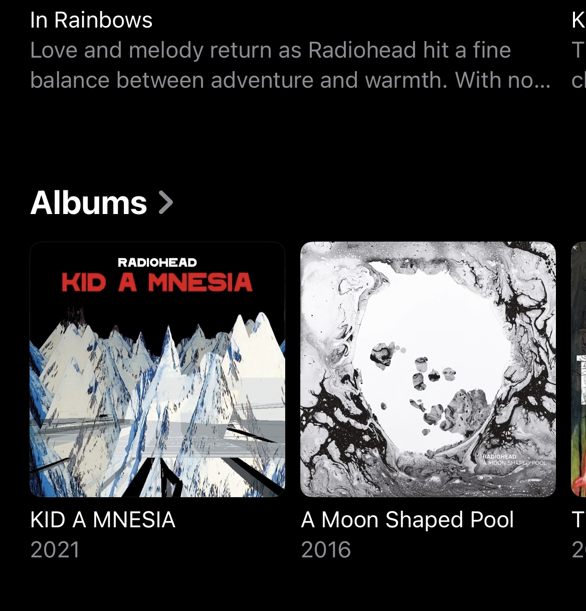 Props for the Radiohead collection. Reckoner is an awesome tune, will check out that remixApple Music feels a lot faster and snappier. Scroll views are scrolling faster.