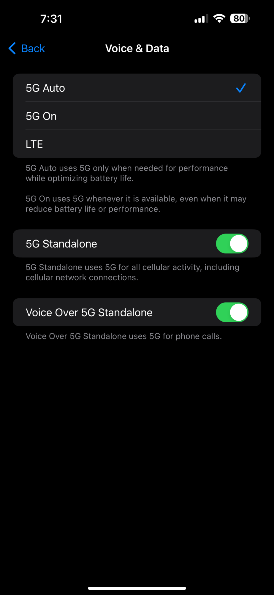 New toggle for voice over 5G standalone!