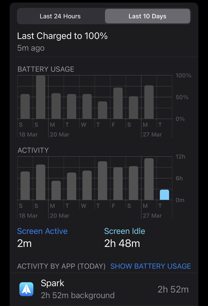 Interesting. Spark has been an absolute disaster for me since iOS 16 and I haven't been able to use it anymore (I try again every few months). It keeps showing huge background usage values all the time. While it doesn't seem to drain the battery, it still throws all my statistics off and I hate that. Spark support says there's nothing they can do and that it's the fault of iOS. Weird, because no other apps do that to me.
