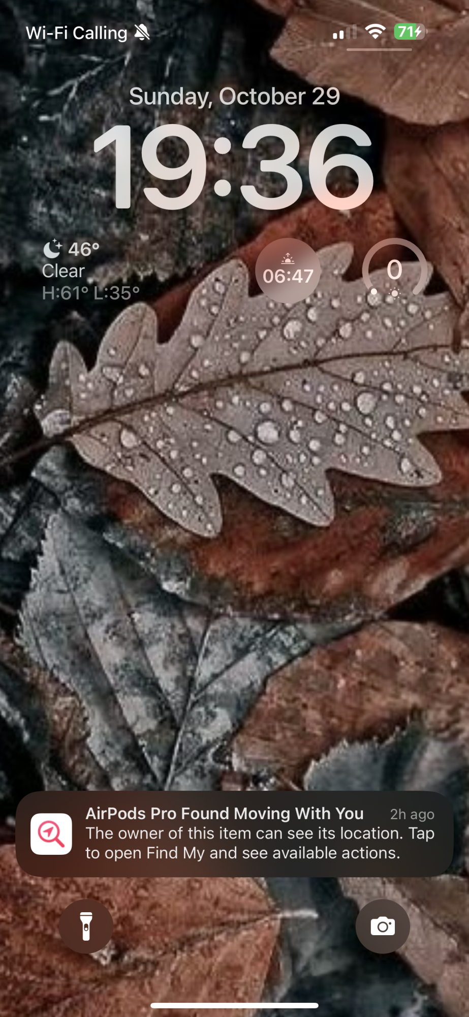On top of this the AirPods warning is back (see attached). When I got this I was wearing them. I fixed this once before by removing and repairing them to the 15PM. Now, it has returned. :(