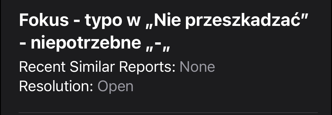 Yup, I also reported this stupid typo in Polish translation of “Do not disturb”.