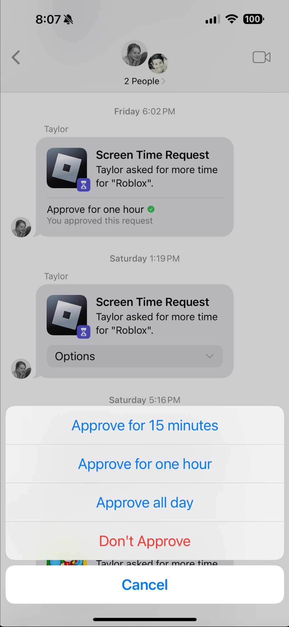 Jeez, Roblox is apparently still a thing and kids are still addicted to it. Some things never change I guess.Screen Time Requests have gotten a great update. We use this with our kids and prior to the RC, the requests would show up as a standard notification on our devices, but after updating to the RC, the requests go through iMessage now with a dropdown menu for processing. This is an awesome update for that feature IMO.
