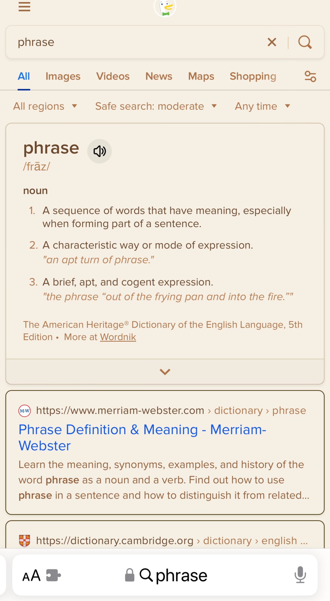 i just pulled the word “phrase” from your post and got this when I selected Search Web.