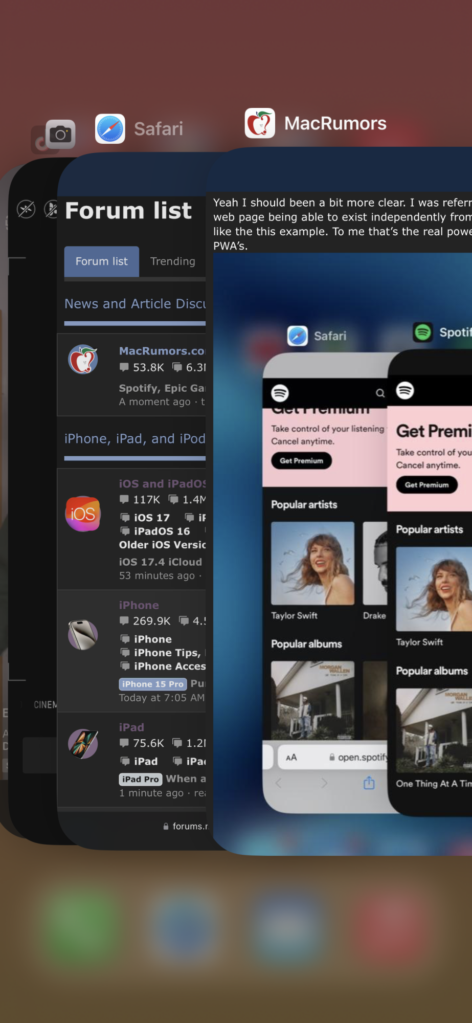 Web Apps indeed still work in the EU by the way. I made the mistake of adding the MR home page to the Home Screen (which only acts as a safari browser tab) instead of the forum (didn’t think it would matter). Wasn’t aware that only the forum was a „web app“.