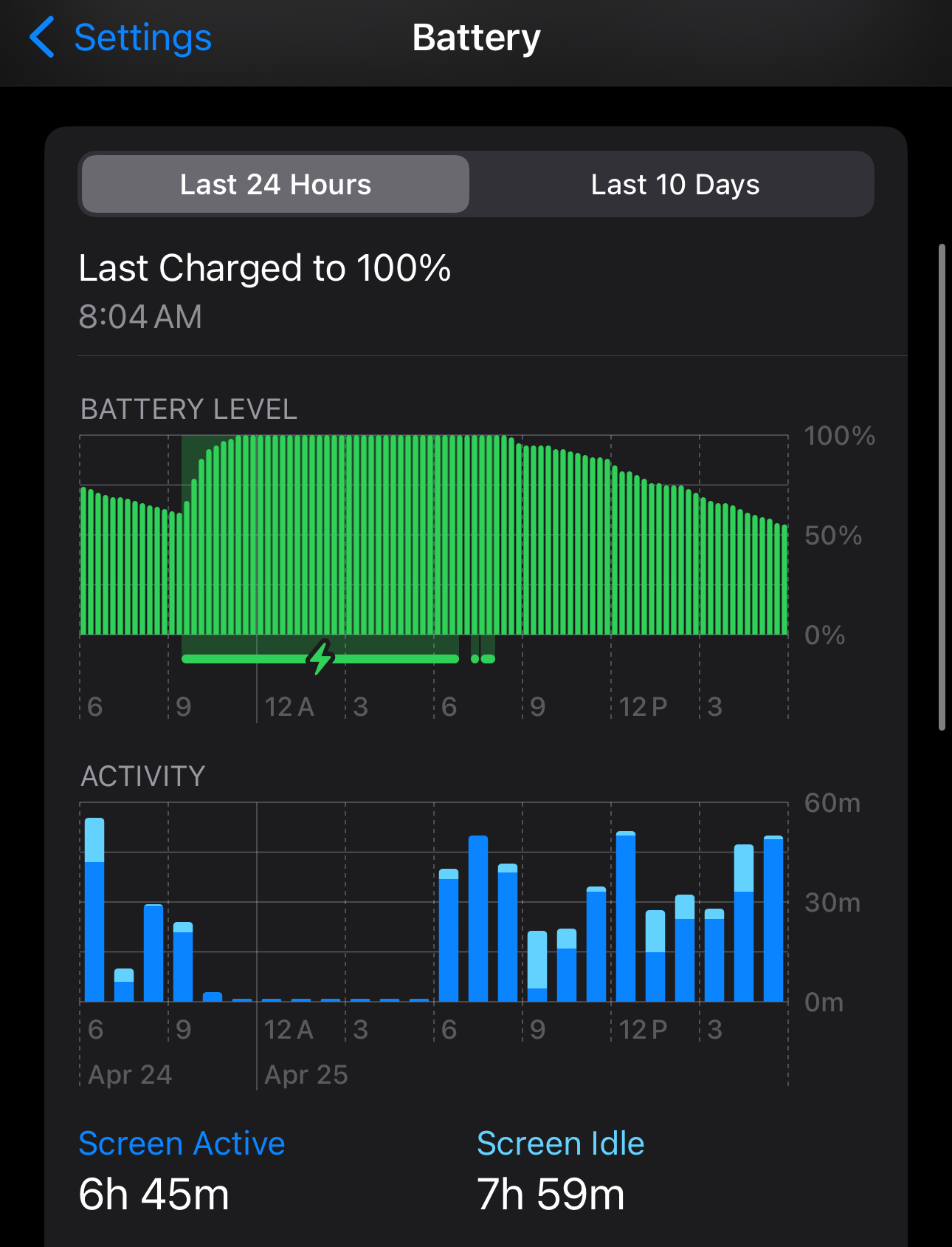 The only thing showing of any note is Home & Lockscreen (17% - 23min). I don't use AOD or night light stuff.