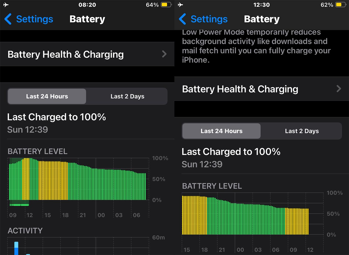 Right after the installation of the build 21G101, the iPhone was pretty hot, and stayed that way with ups and downs in temperature. During that night, it drained an important % with no activity, and during the next day, just by browsing in Safari it made the phone hot and the battery dropped pretty quickly. It’s a pity I no longer have the screenshots to share how steep the curve was during the phone usage.