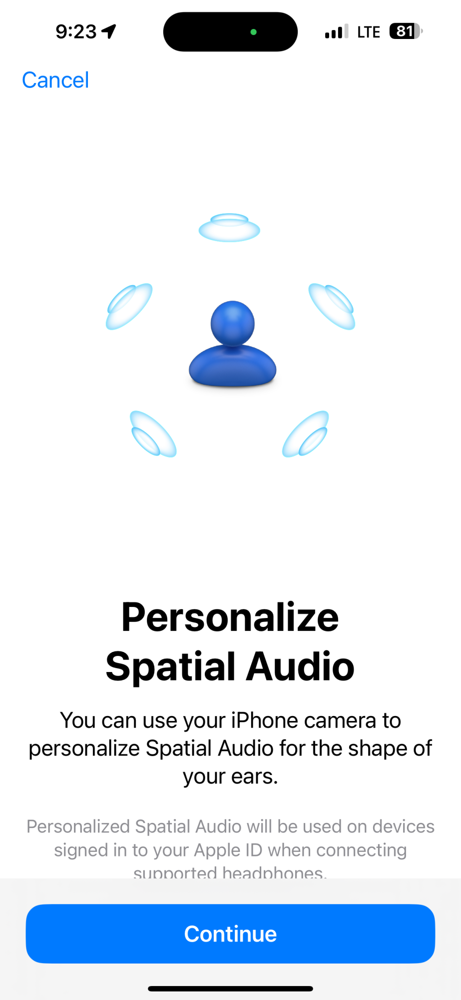 Did ane else running the AirPods beta get the crazy "head modeling" Spatial audio setup process? It just popped up on my phone (of course, I am somewhere where I can't do the head contortions needed to complete the process). Is this new or did it just appear for me now despite having been out a few weeks?