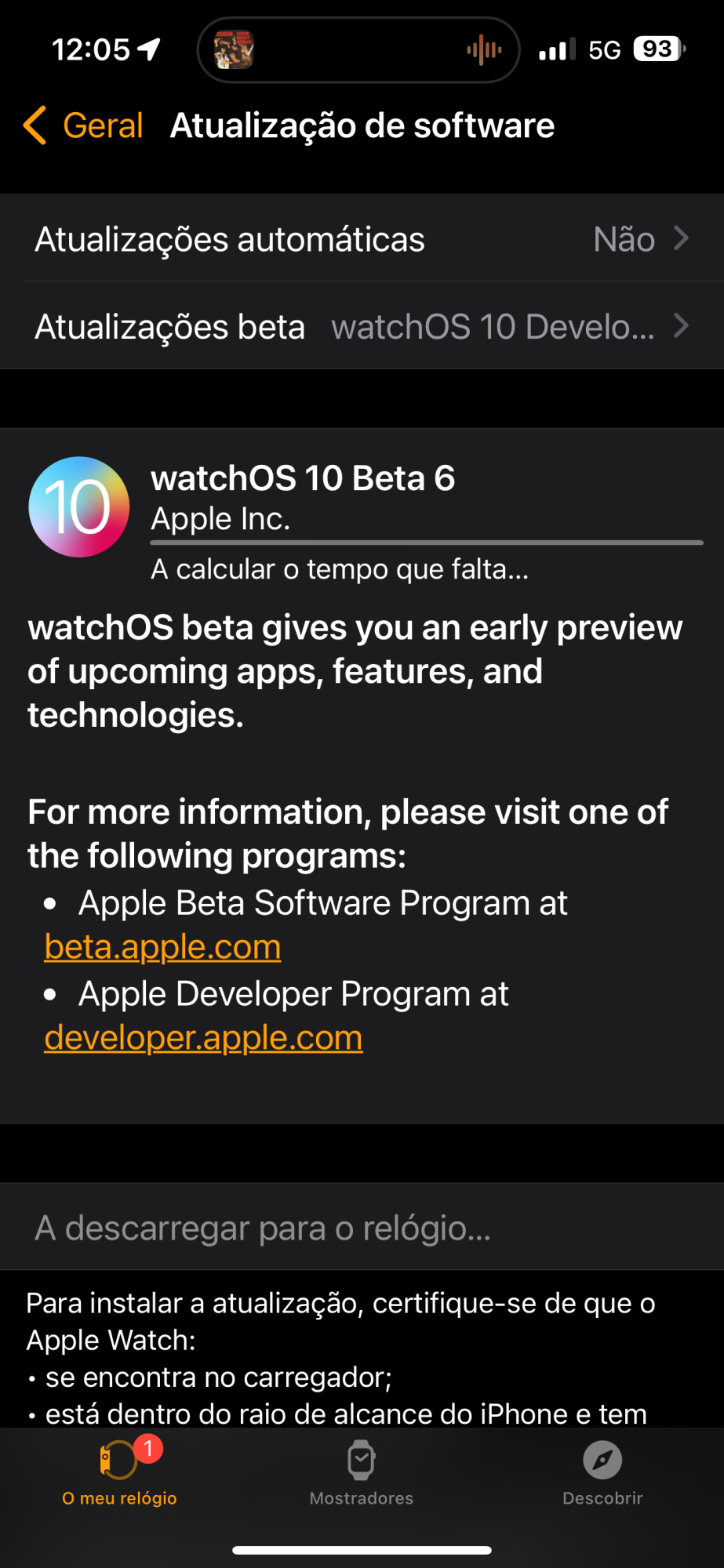 It stays in “Calculating time to download”. After a while it gives an error on updating.