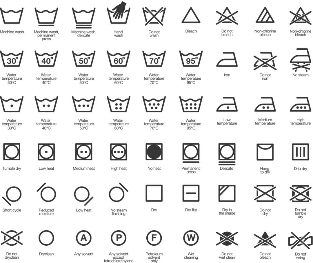 The problem is the space they need to print these symbols on the label. Many times, they need to omit the wording (regardless of the language the garment is made or the country it's bought.)source