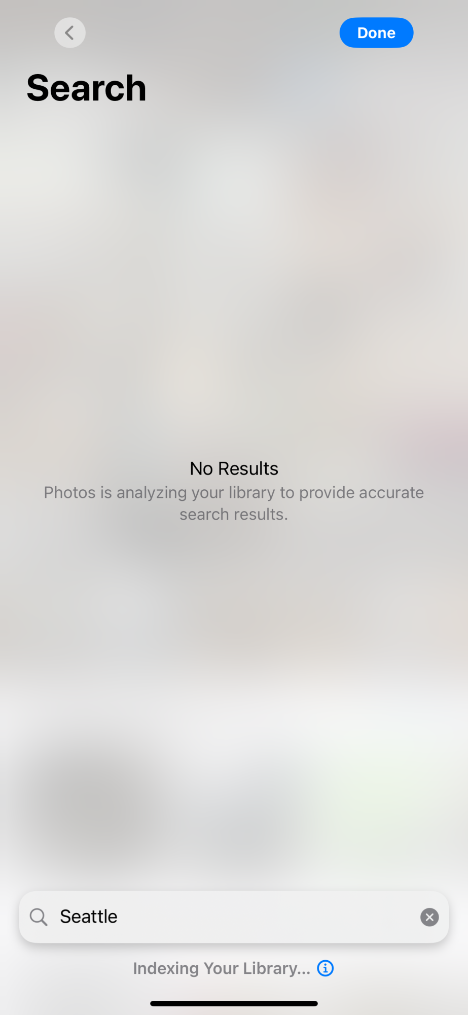 The search in the photos app is now better for me, it no longer shows me words in English, only in Spanish, and it works perfectly. I've never seen the message that the photos are being indexed, neither when I installed ios 18 nor in beta 1 of ios 18.1.