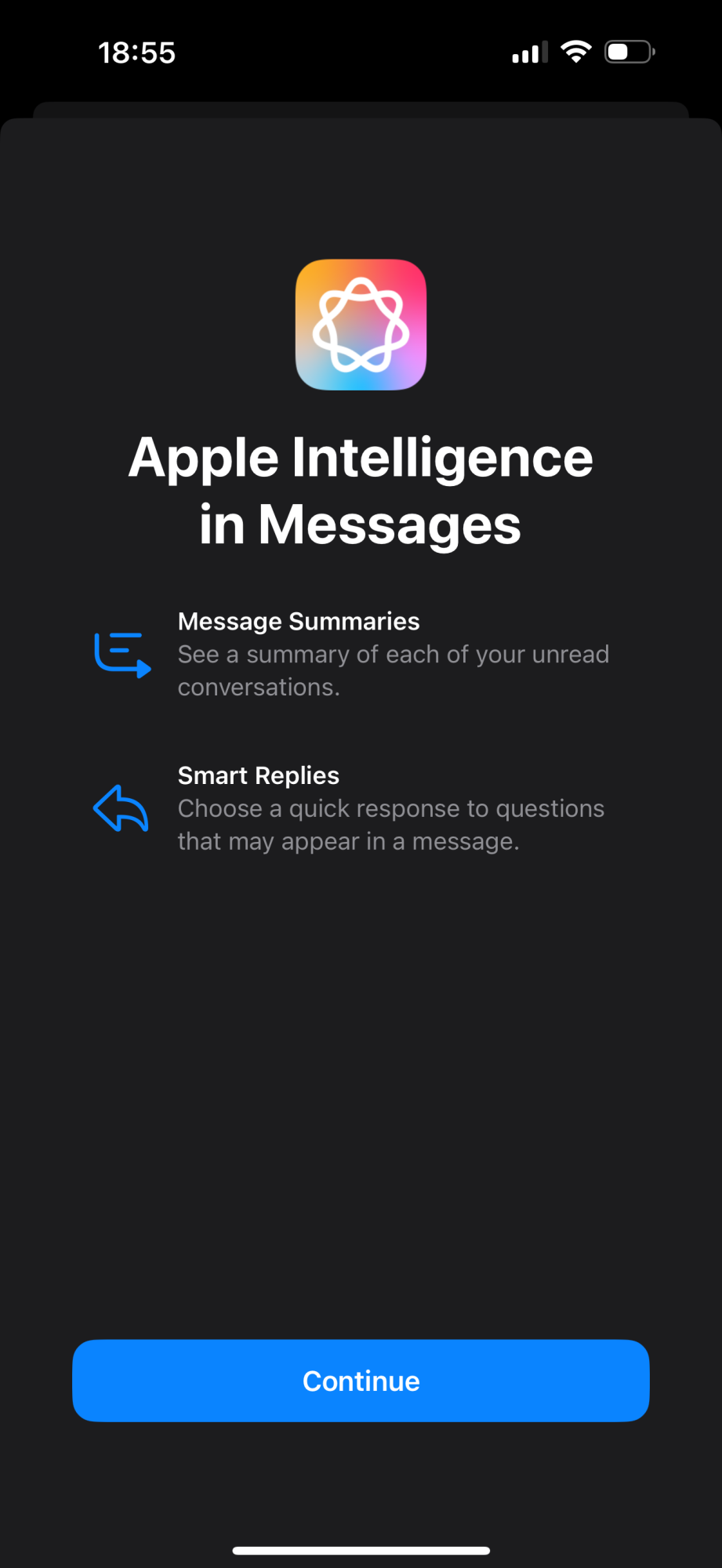 Yep, I got one in Messages.I see they have layered in splash screens illustrating the Apple Intelligence features for different apps.
