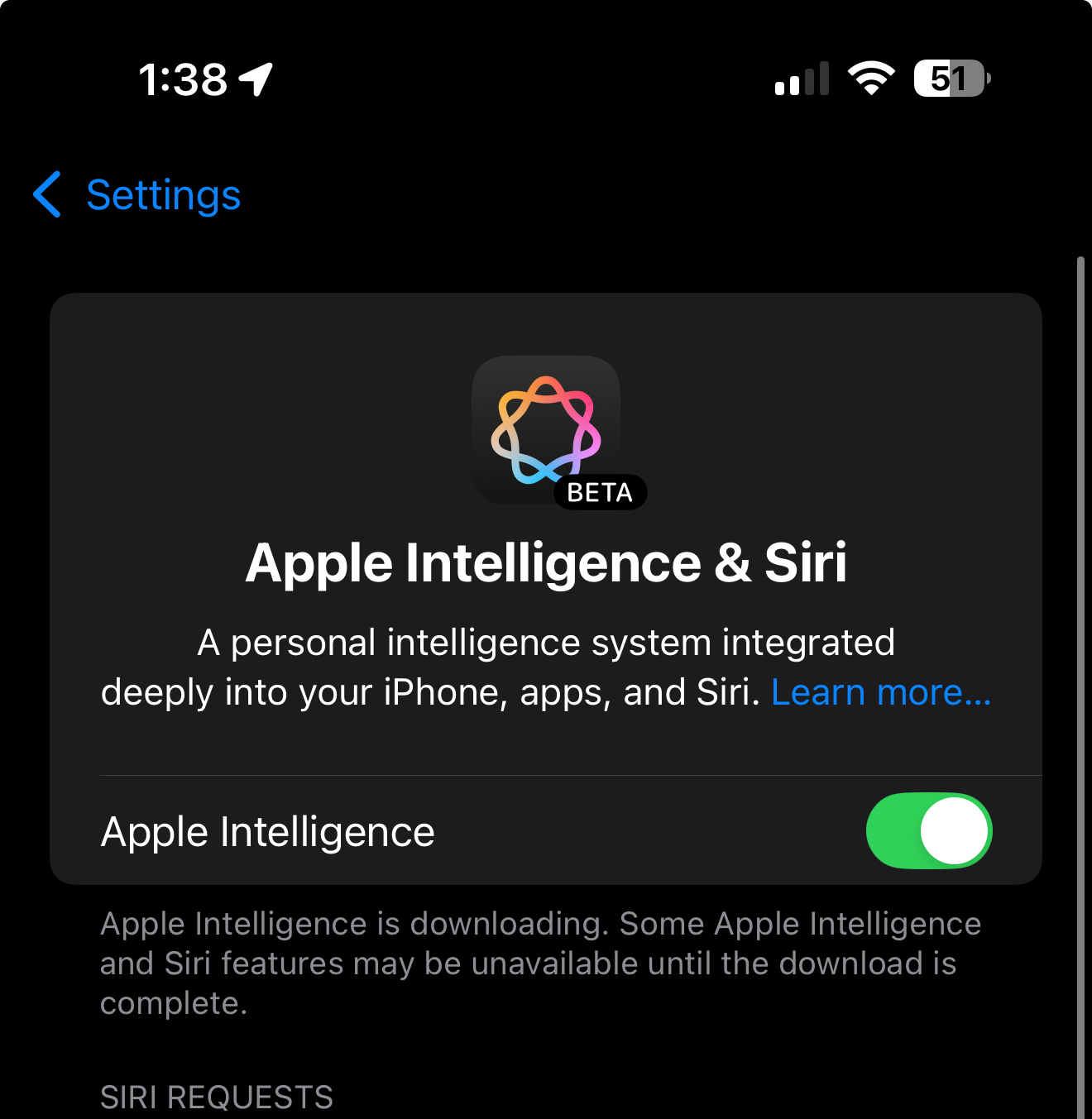 Not here...View attachment 2426409Anyone else seeing Apple intelligence is downloading after updating?