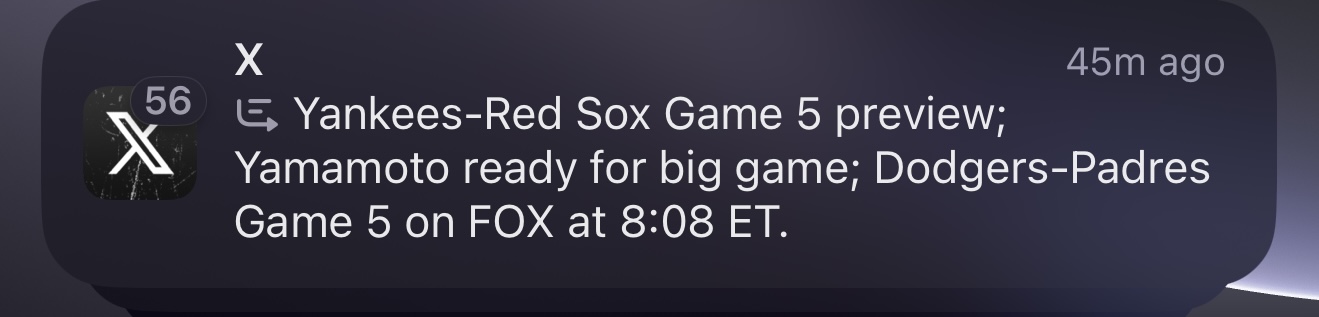 They do particularly badly when attempting to summarize grouped notifications. I’d bet that somewhere in that stack you still have an X notification about a Yanks / Red Sox series from earlier in the year. But the AI needs to figure out that old stuff is not relevant.