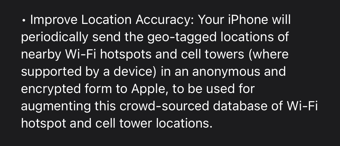 I wonder if that replaces "Improve AR Location accuracy"?Thank you! Supposedly it's supposed to chose if you want to help crowdsource wi-fi and cell networks.