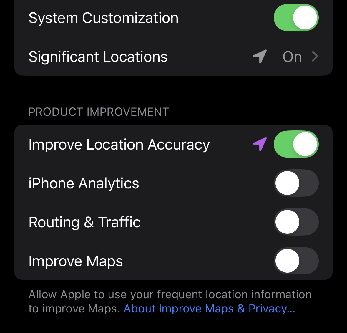 Yeah, it's there for me too, my bad. I falsely remembered it was under Location services.I have it on my 13 pro on 18.3.2, its under "Settings>privacy & security>analytics & improvements".