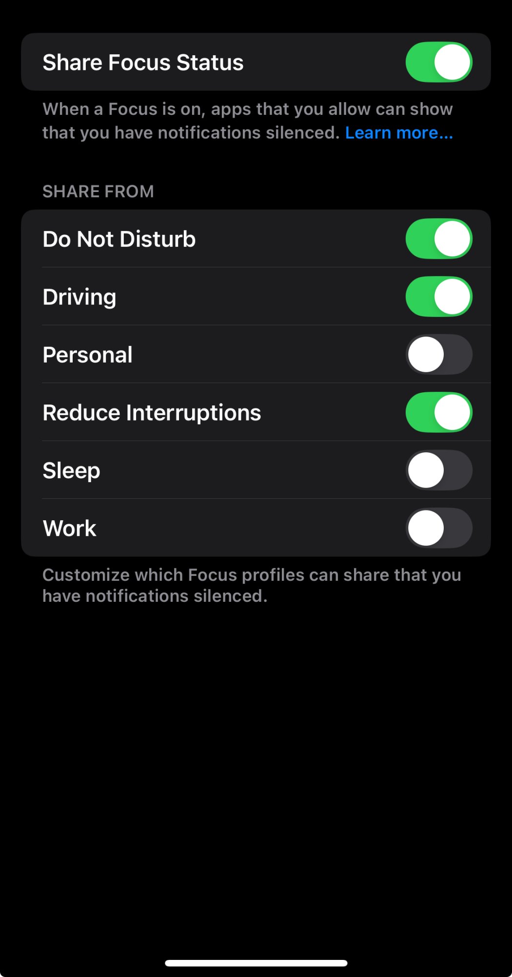 Looks like this is new too. Sharing focus used to be an all or nothing before unless I haven’t been paying attention for too long.I noticed this too recently, perhaps with the 18.6 update, but I don't recall for sure. You can delete it if you don't need it. I have my customized modes set for the specific scenarios I need, so I got rid of any "curated" ones like this.
