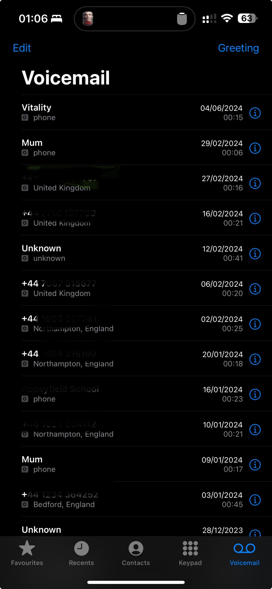 In Phone on iPhone, Visual Voicemail shows a list of your messages. You can choose which ones to play and delete without listening to all of them.