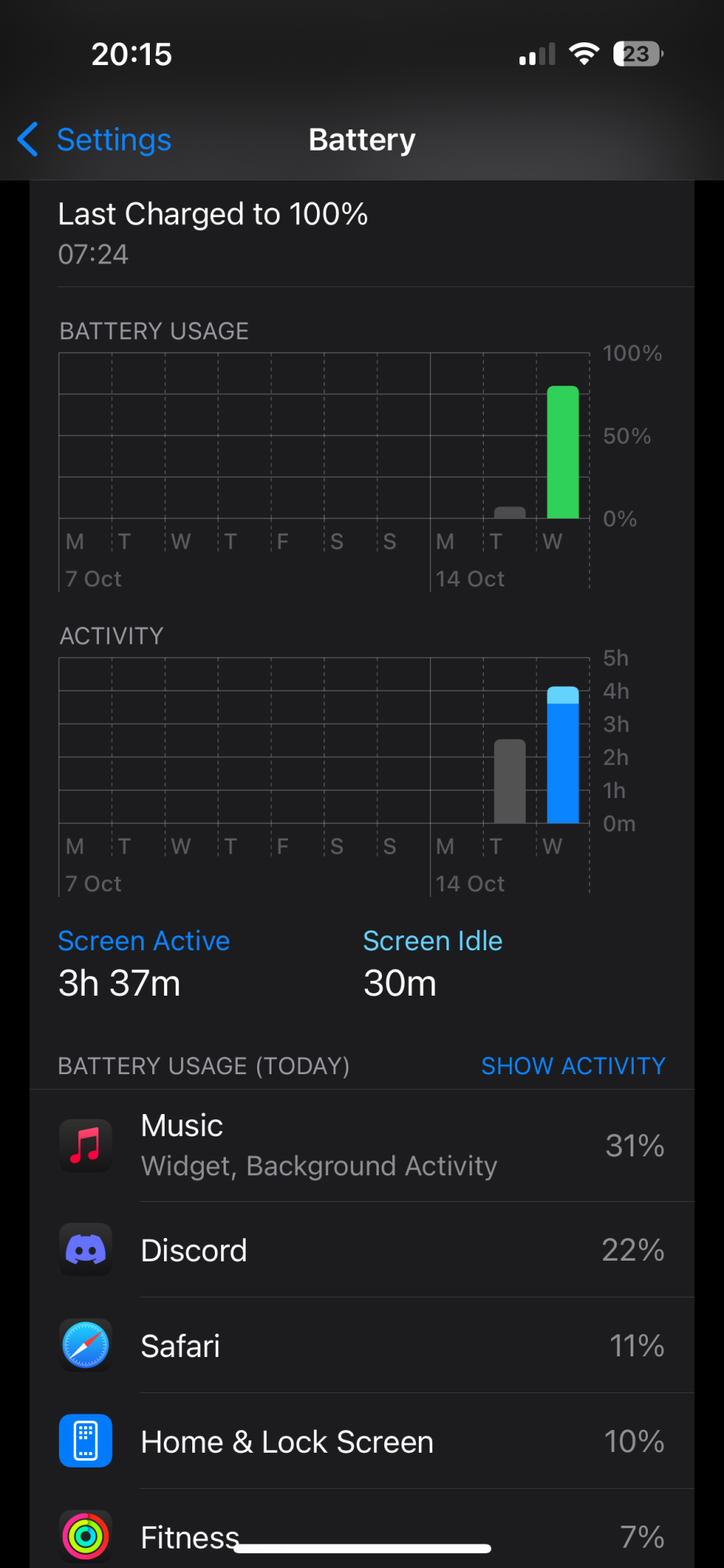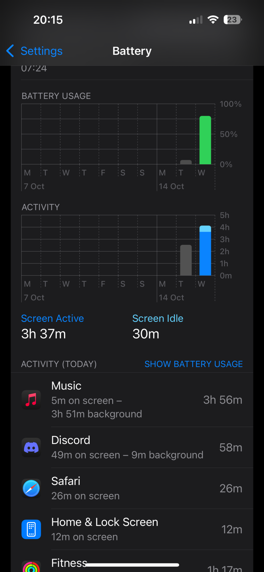 Do you stream music with Apple Music or offline usage only?I understand what you’re saying however I disabled all synchronization of iCloud data to the phone, like for example photos, mail, so on and so forth. My approach is to install app by app and study the phones behaviour. Nonetheless, I’ll give it a few days and see how it’s goes. But even if it’s syncing/indexing and whatnot, those battery figures are still subpar.