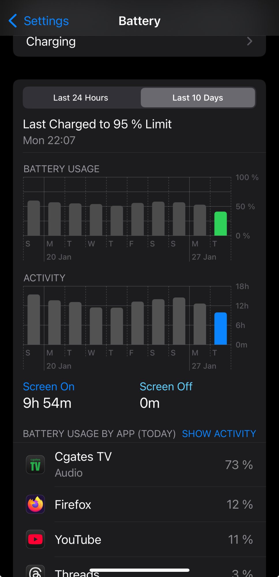 Funny thing is, both my partner and brother have the iPhone 13 Pro. They get more than double the SoT, with much poorer battery health, and using the device for everything.