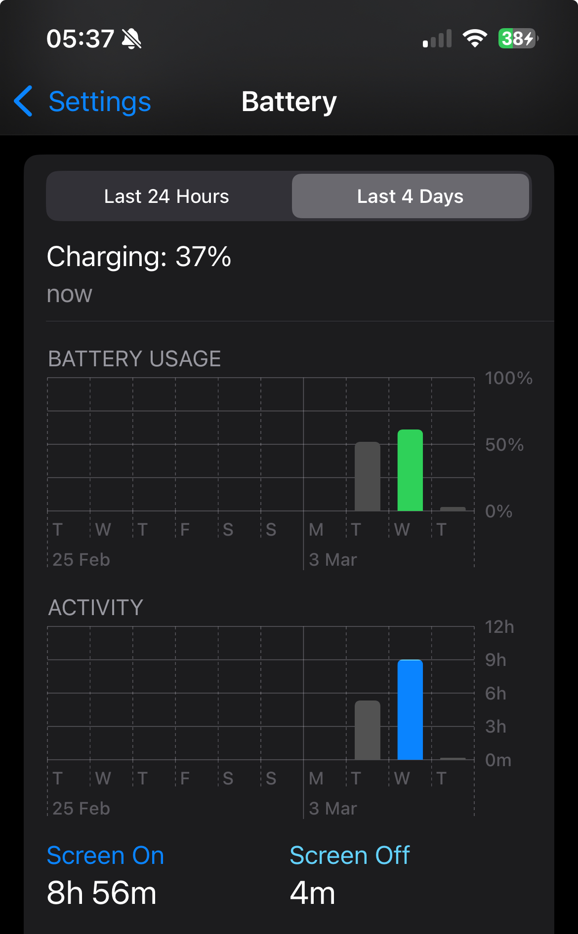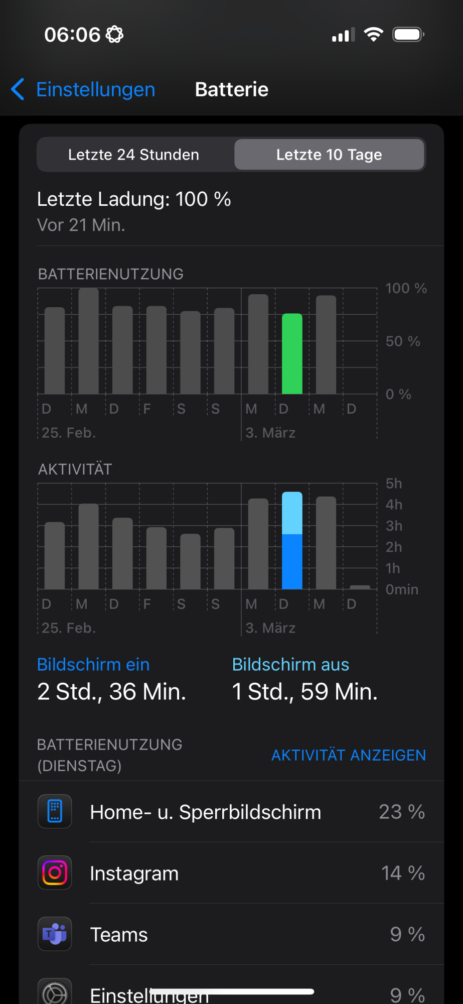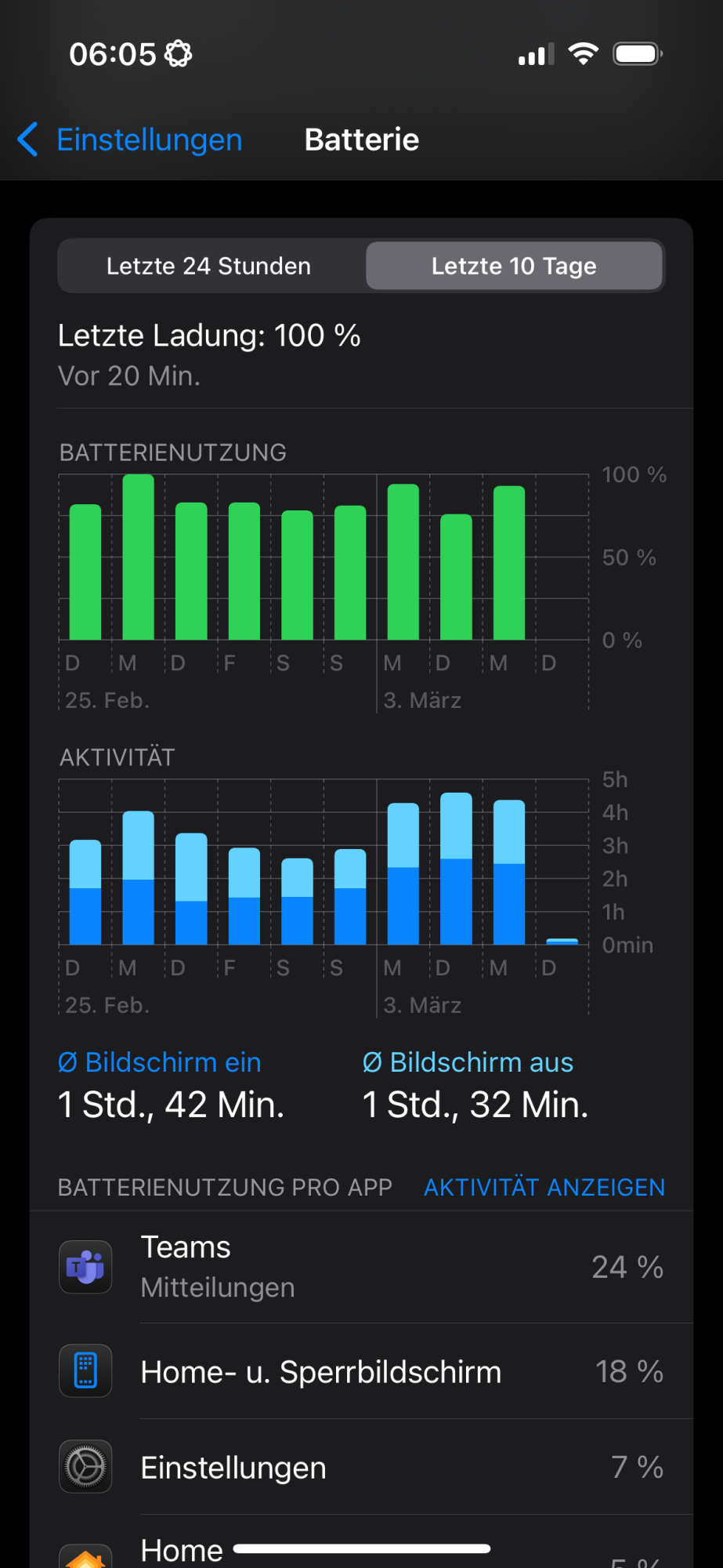 => around 4.3 % per hour, which is, taking in consideration I had 1.5h Teams calls on the phone today, actually kind of okay.