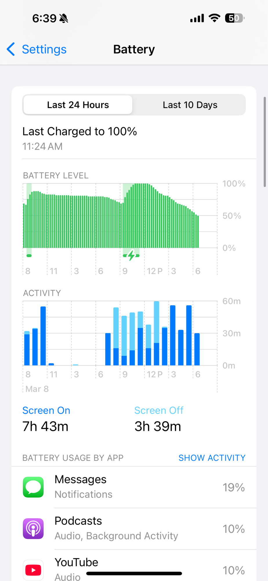 With only 3h of usage (all together, screen on and off)?Ain’t bad that’s completely fine for battery to go down like that off the charger. But I turn off background app refresh entirely, so why not just turn it off?