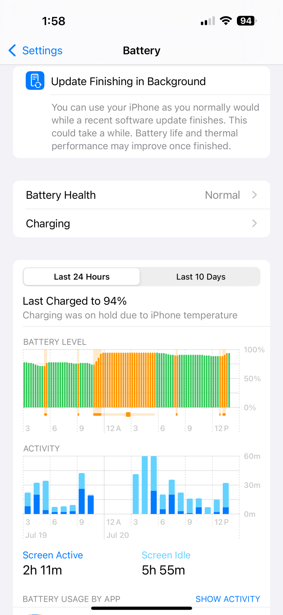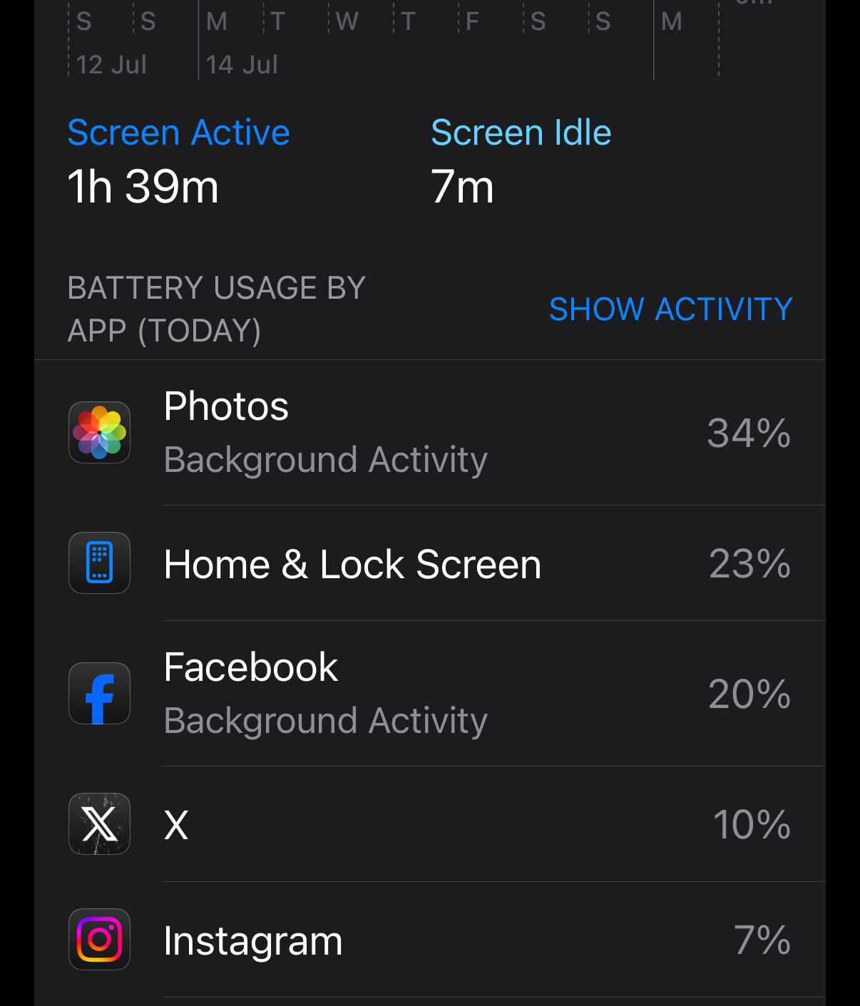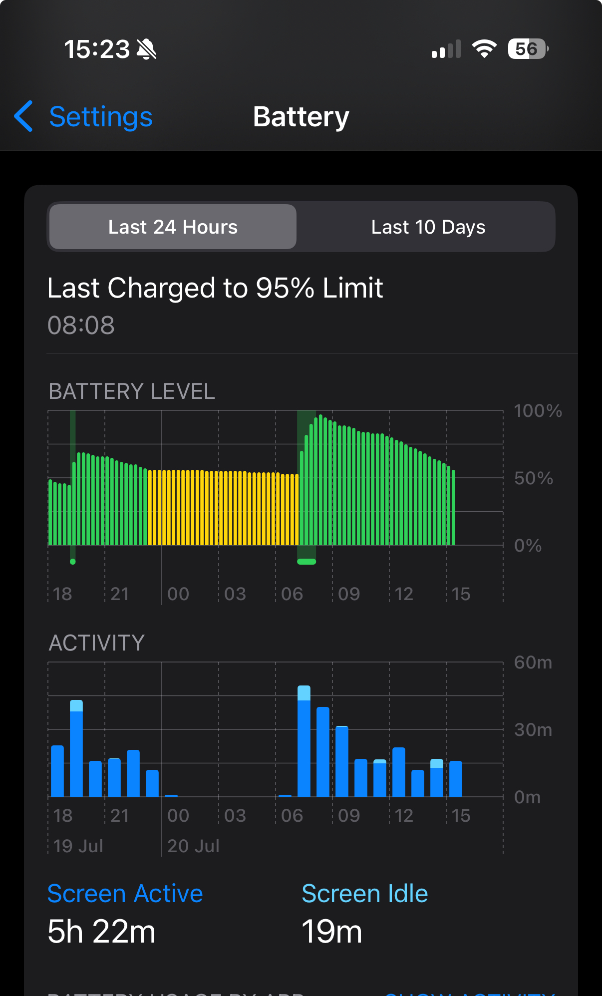 It randomly comes and goes. It started a couple of months after I bought it (it did NOT happen at the beginning, I got my 16 Plus back in March), and it never really went away. And it is magical. Not only does it appear randomly, sometimes it is weird. Say, it appears overnight at the 4:00 am-5:00 am bar for 23 minutes, and then stops. Randomly and inexplicably. I’m sleeping at that time and haven’t touched the phone. I wake up at, say, 6 am and I just have those 23 mins from 4 to 5 and nothing else. I haven’t really found a solution.