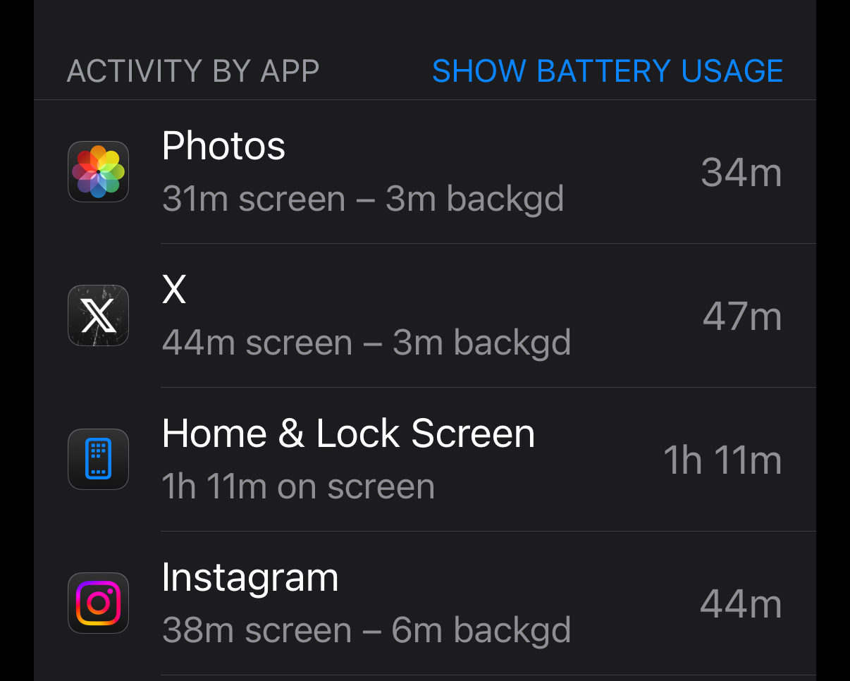 -Randomly adds “screen-on time” to the hourly bar as “Home and Lock Screen” usage when the phone has been on standby with NO usage whatsoever