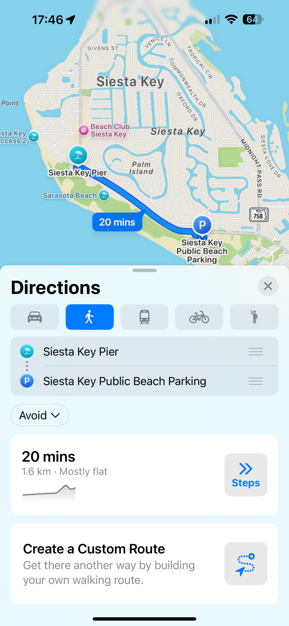 You have to select walking. I just tried here is the image.