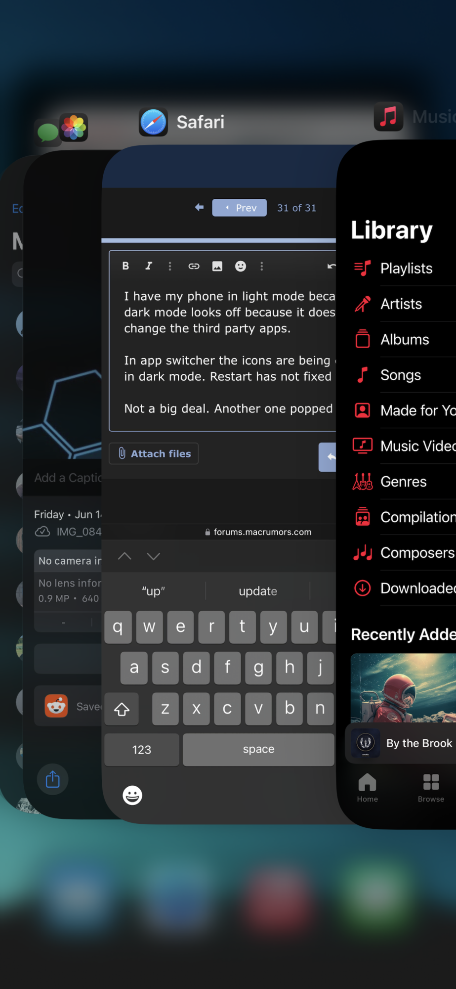 In app switcher the icons are being displayed in dark mode. Restart has not fixed this.